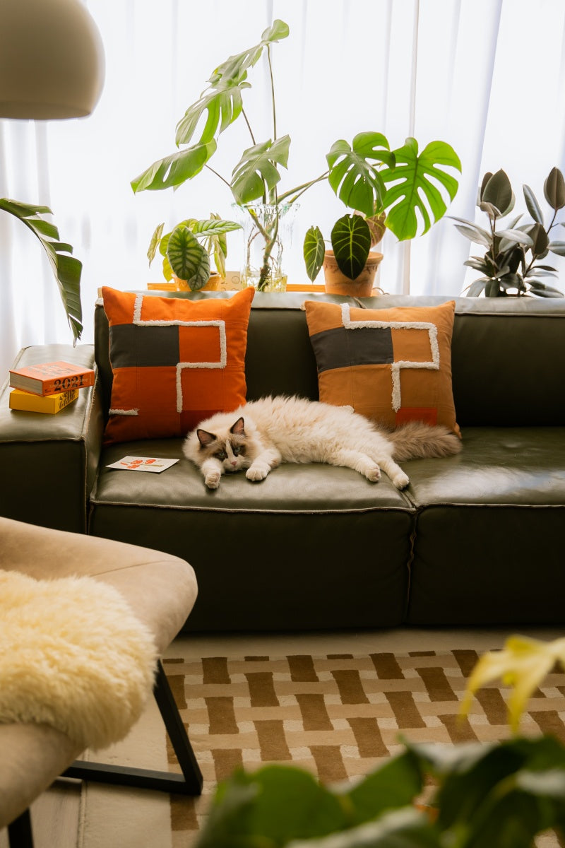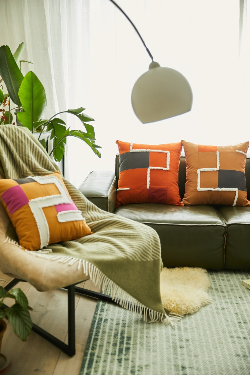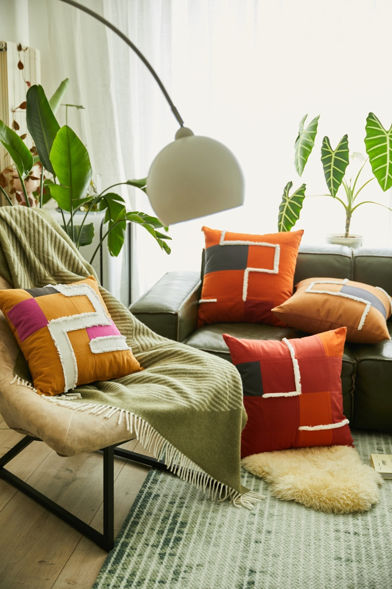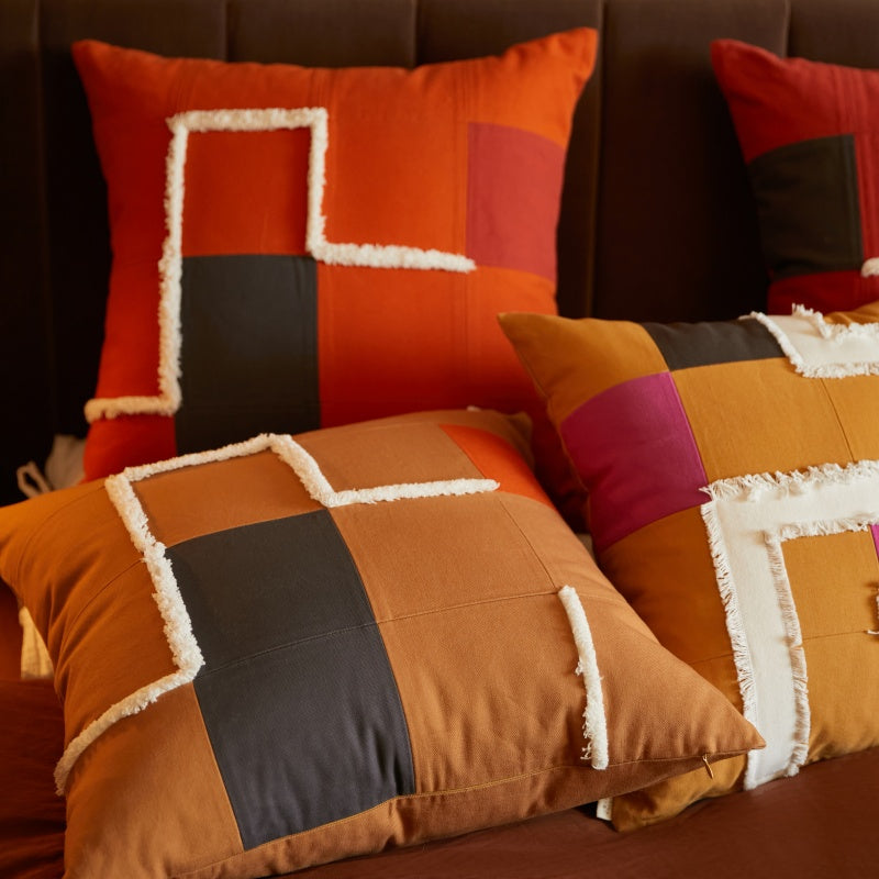 This pillow is designed to bring the iconic minimalism of Mondrian into your living space. The unique cutting and combination of squares creates a dynamic visual experience that will add energy and vibrancy to any room.