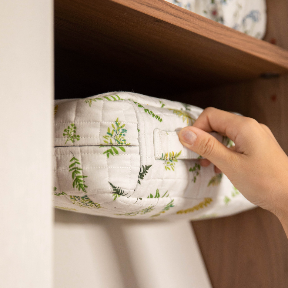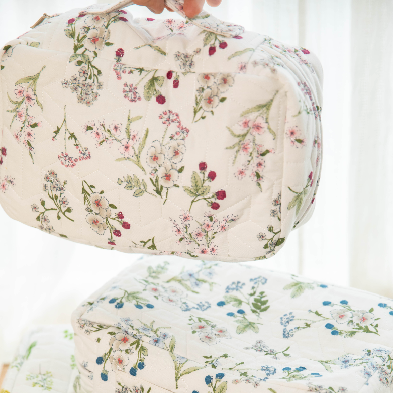 The Floral Patterned White Storage Bag combines elegance and practicality with its popular botanical floral fabric. Featuring a crisp white background accented by vivid plant prints, this bag exudes a fresh, clean aesthetic perfect for organizing your essentials.