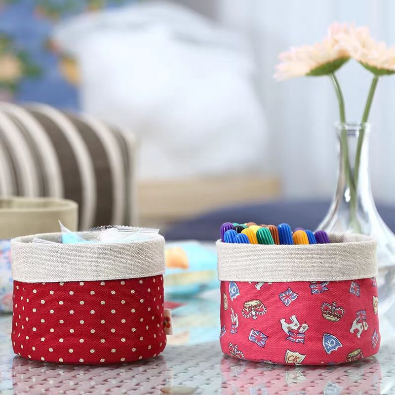 This charming canvas and cotton-linen storage basket is your versatile solution for decluttering small spaces. Measuring 12x12 cm, its height is easily adjustable to fit various needs. Use it to organize desktop items, store small essentials like keys or coins by the door, or neatly hold cosmetics, crafts, or snacks. Compact and lightweight, this basket is perfect for any corner of your home or office.