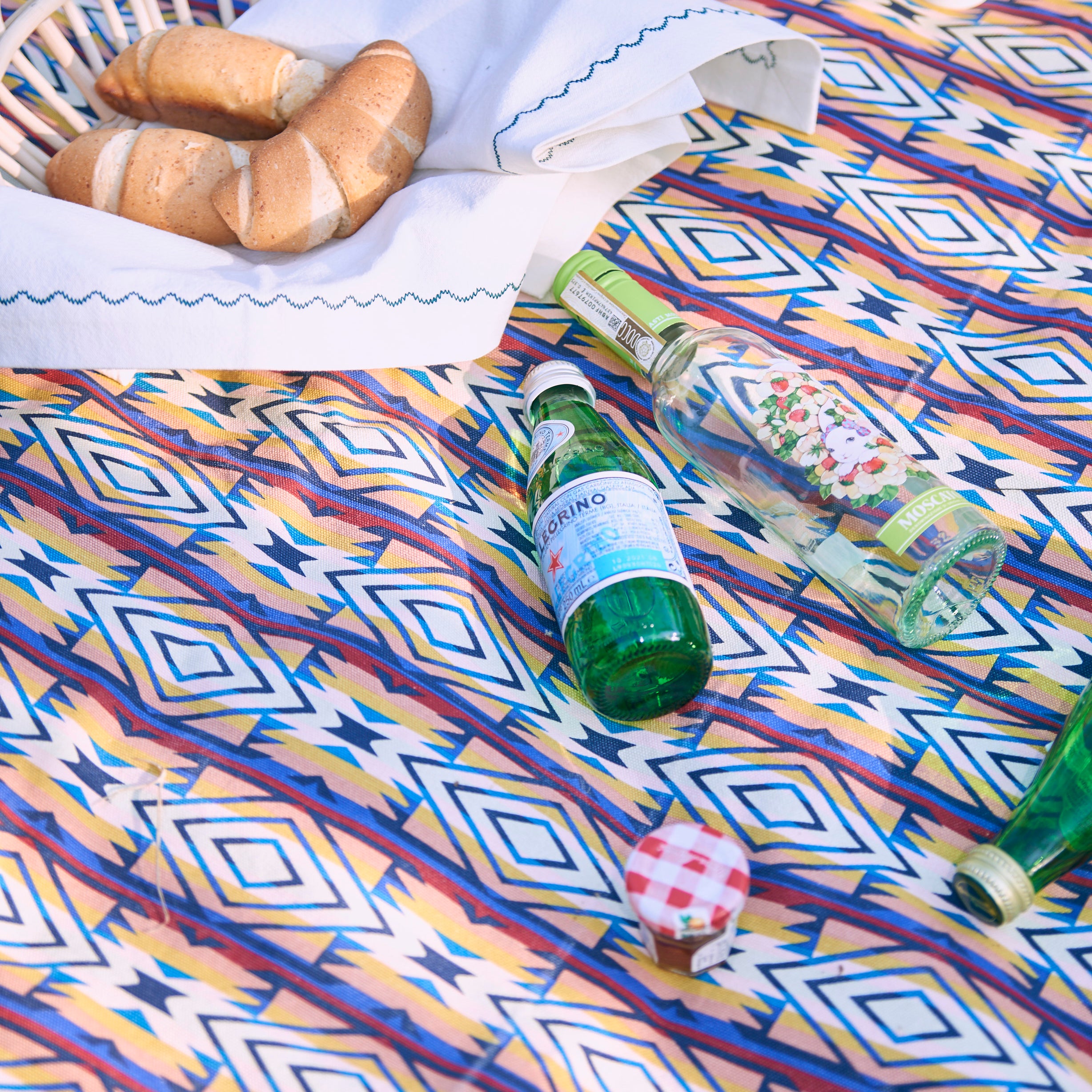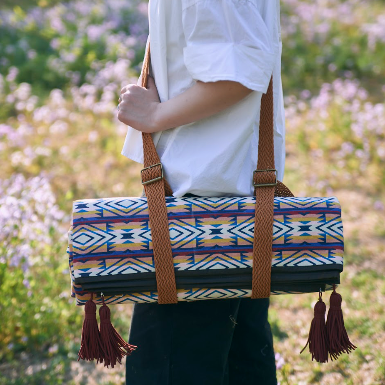 Step outside and enjoy your adventures with our exquisite picnic blanket, designed to enhance your outdoor experience. This picnic mat features classic geometric patterns paired with vibrant colors, making every picnic feel as rich and bright as a spring day.