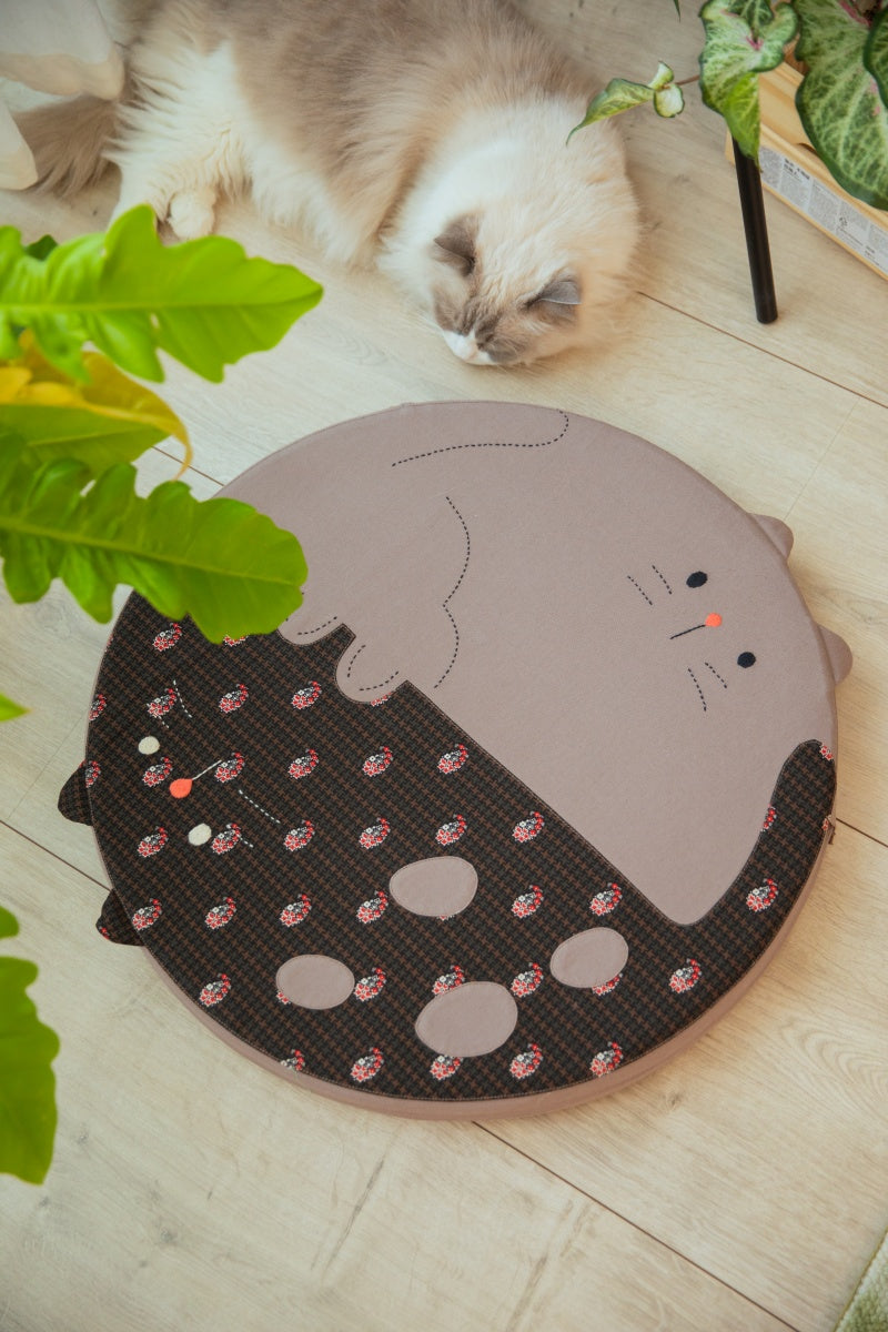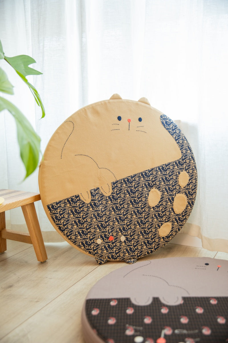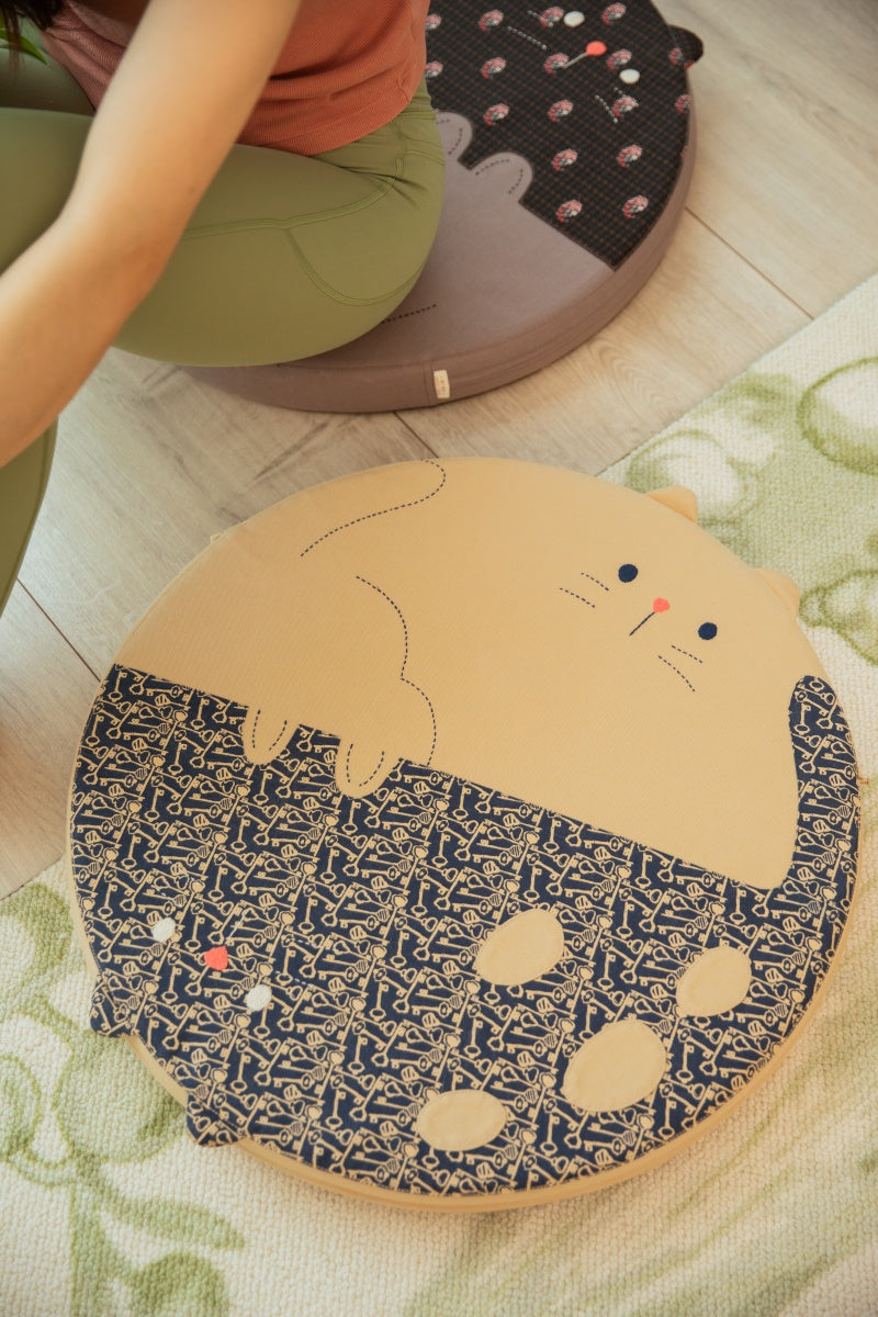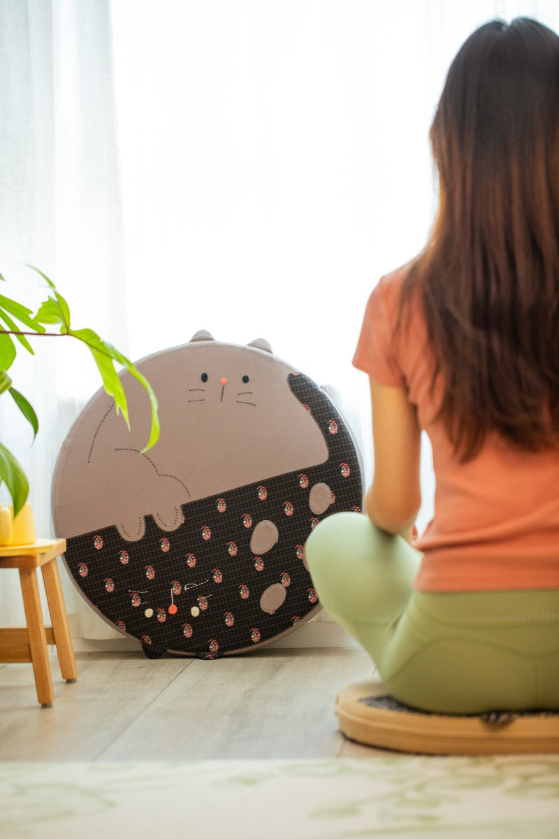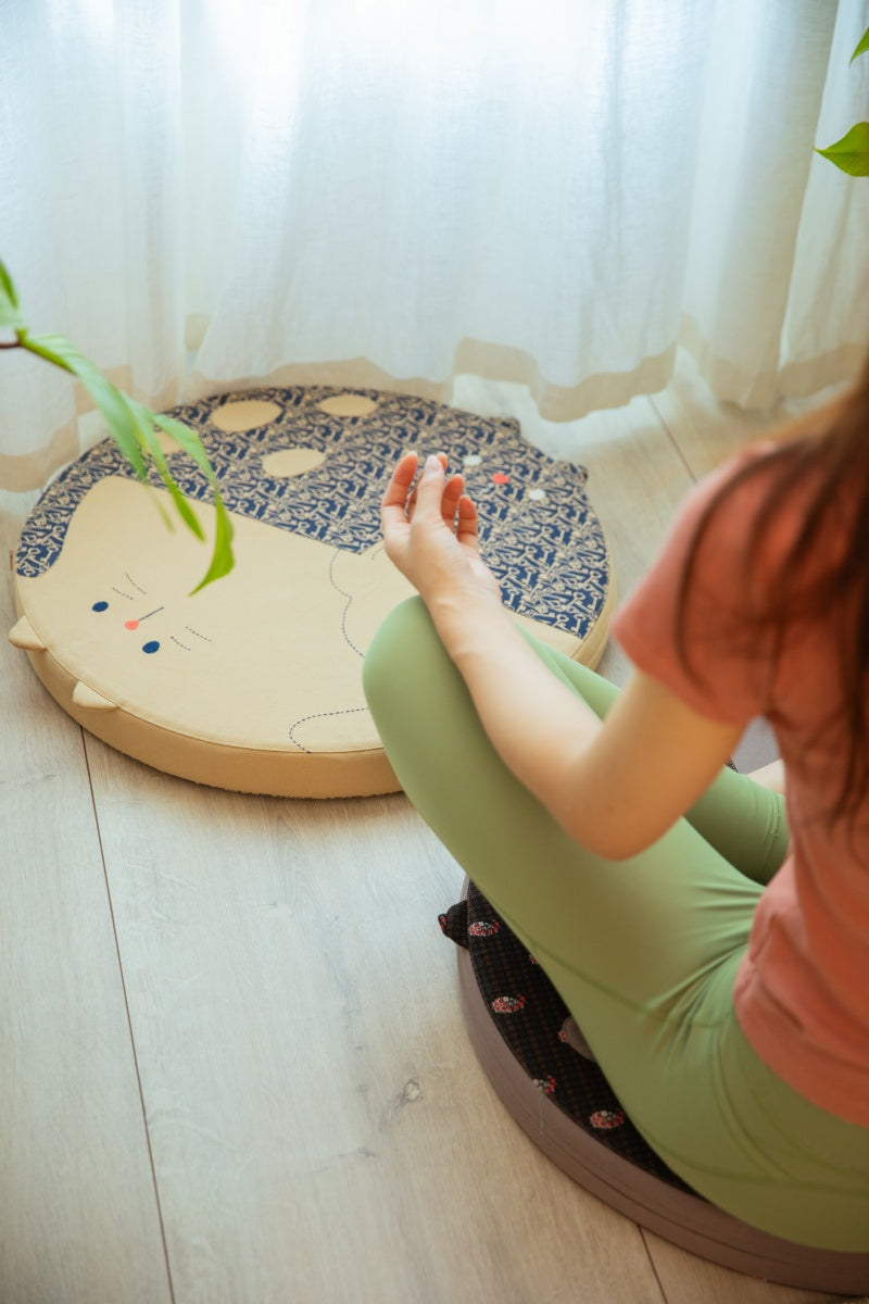 Kitty Round Meditation Cushion – Handcrafted with Natural Palm Fiber