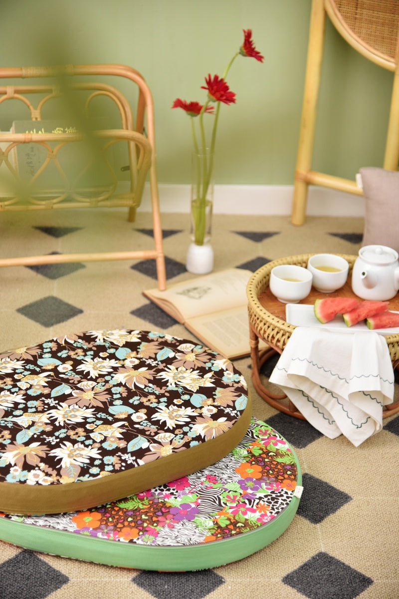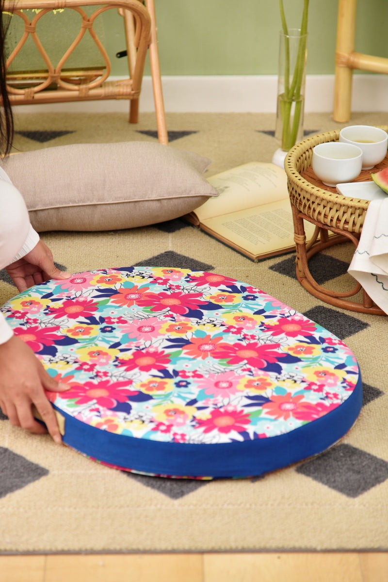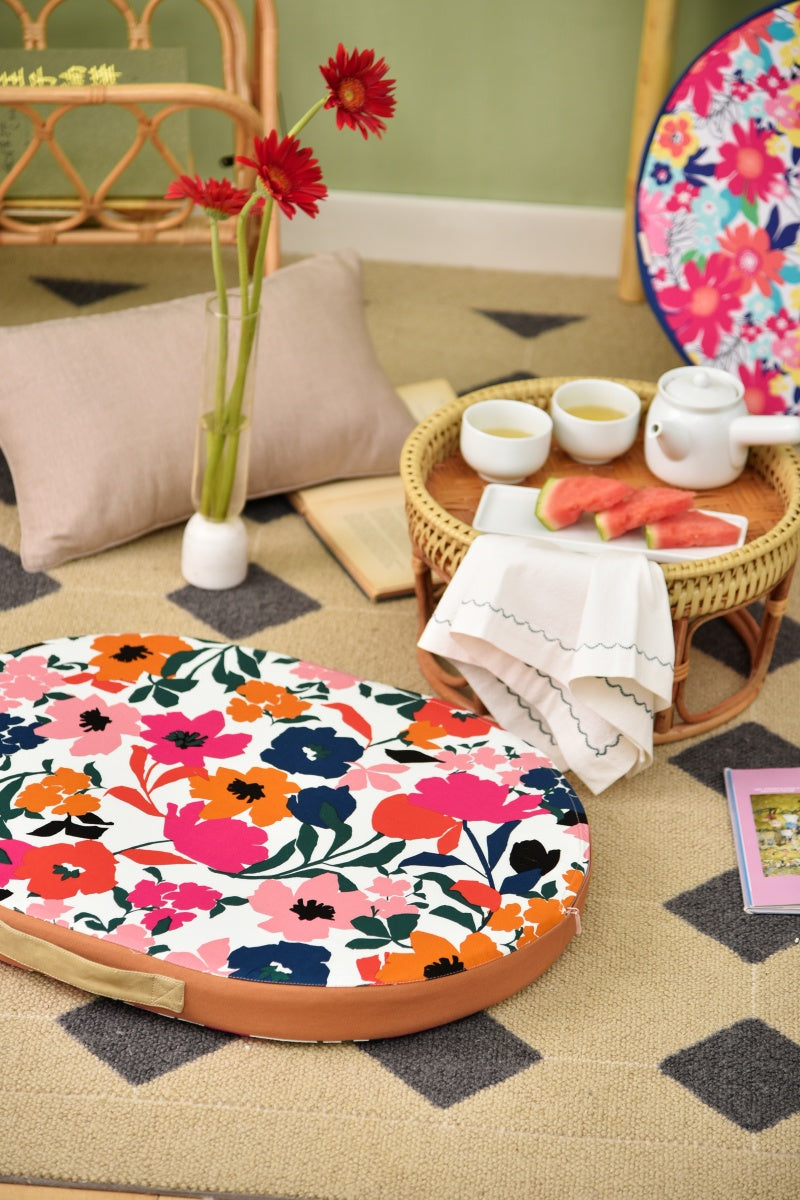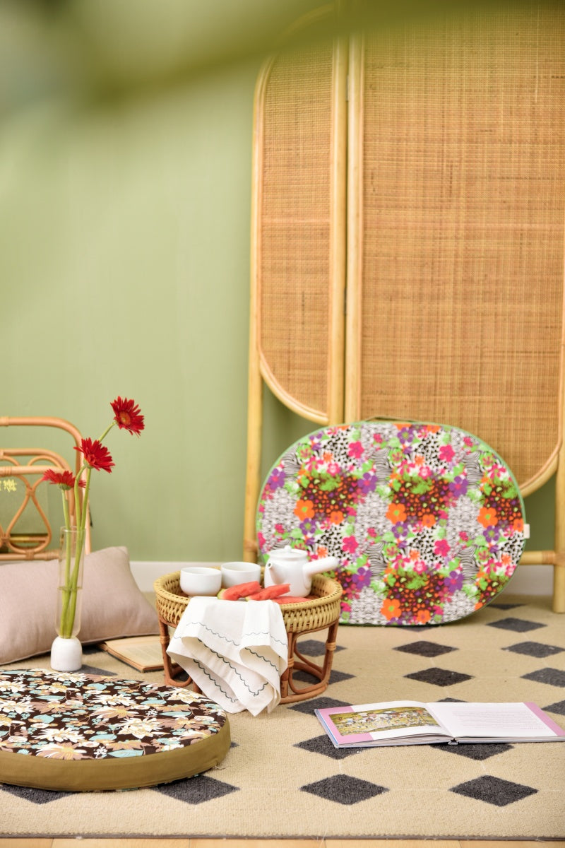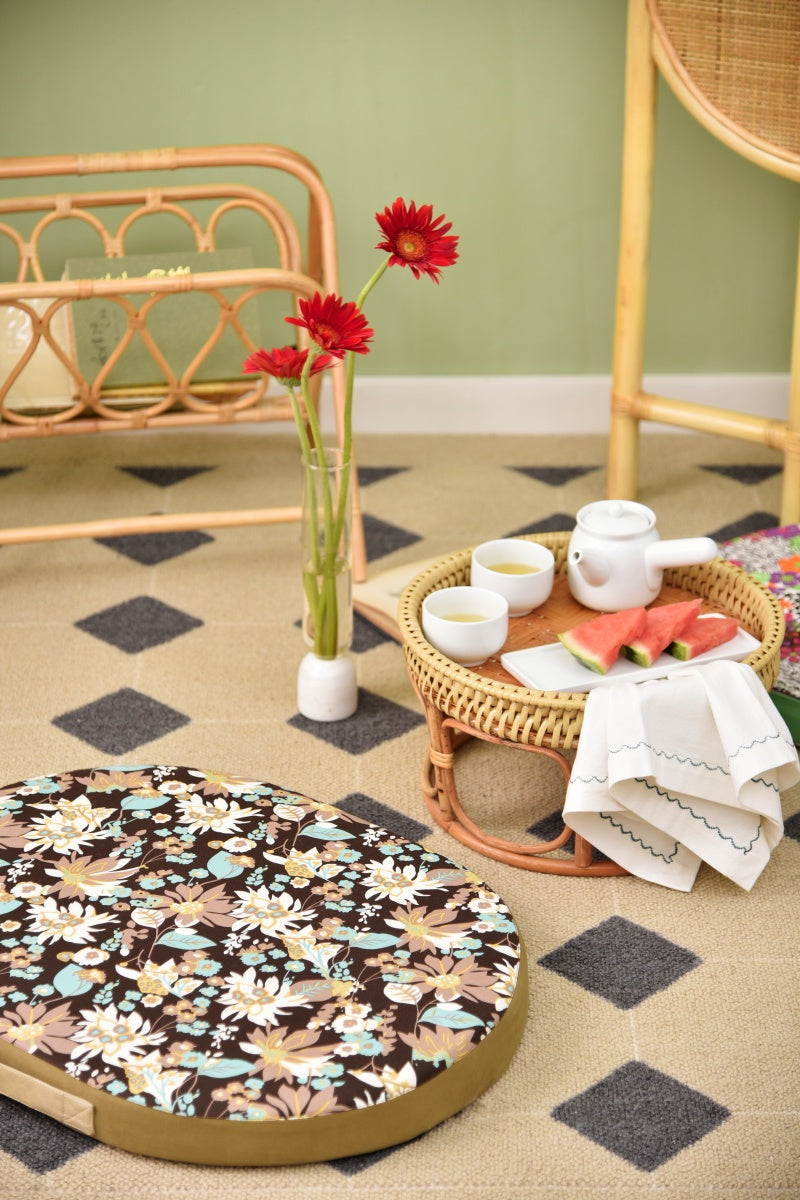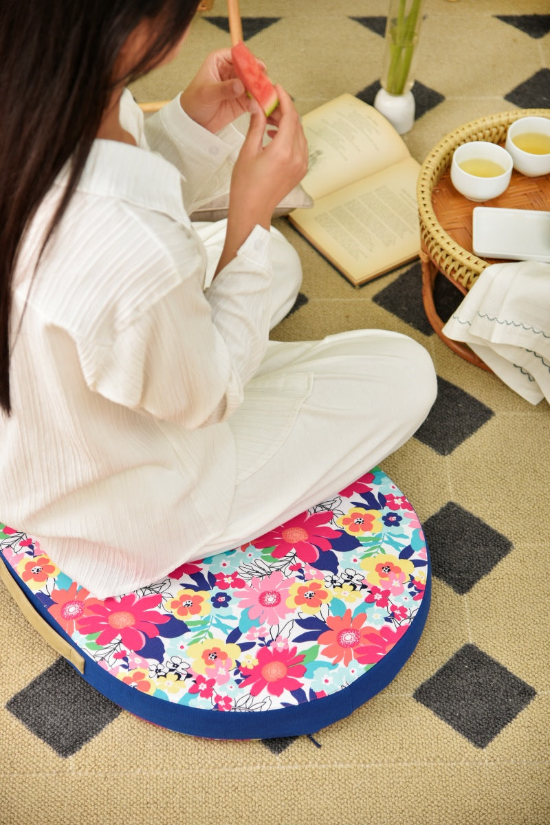 Floral Patterned Meditation Cushion – Handcrafted with Natural Palm Fiber