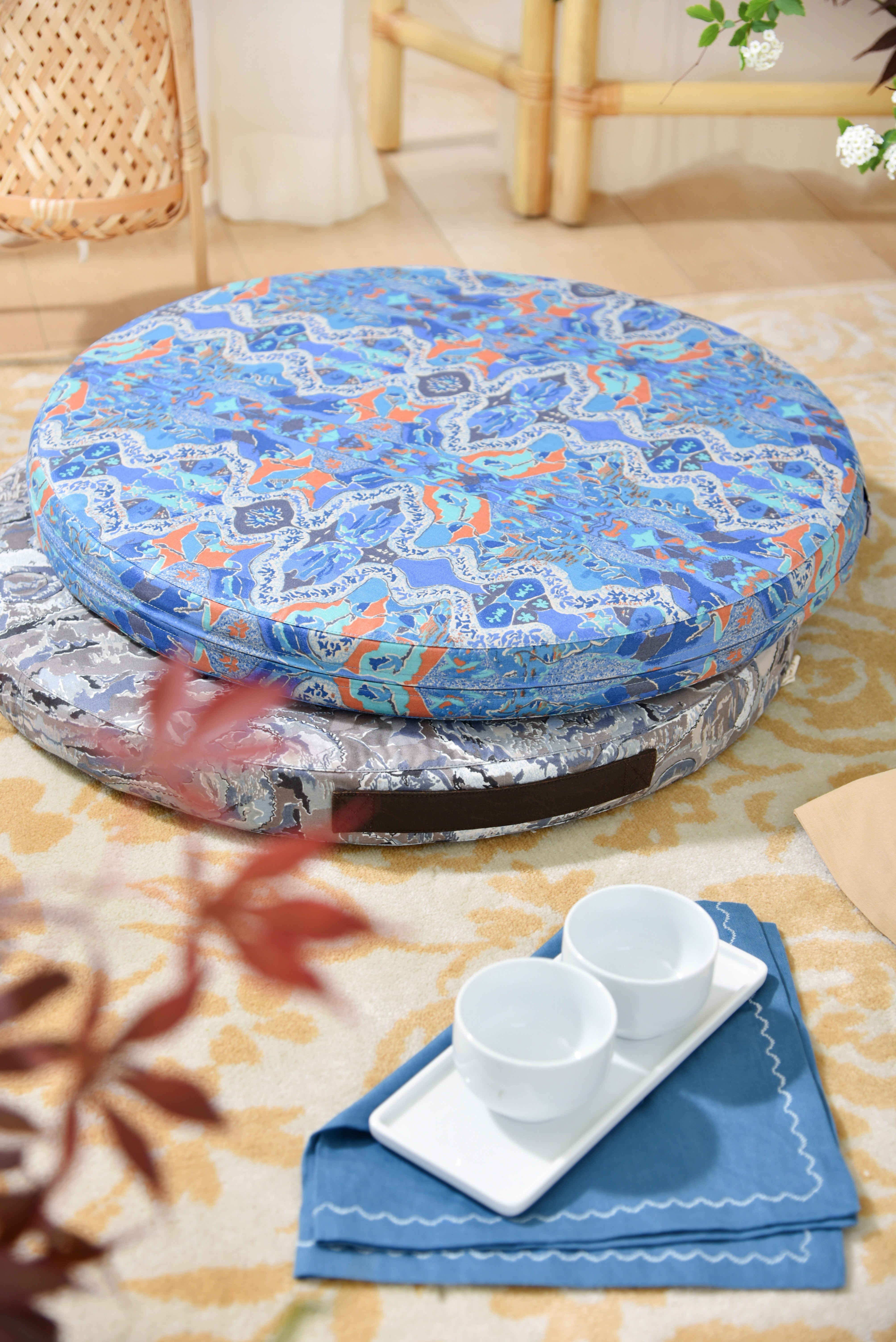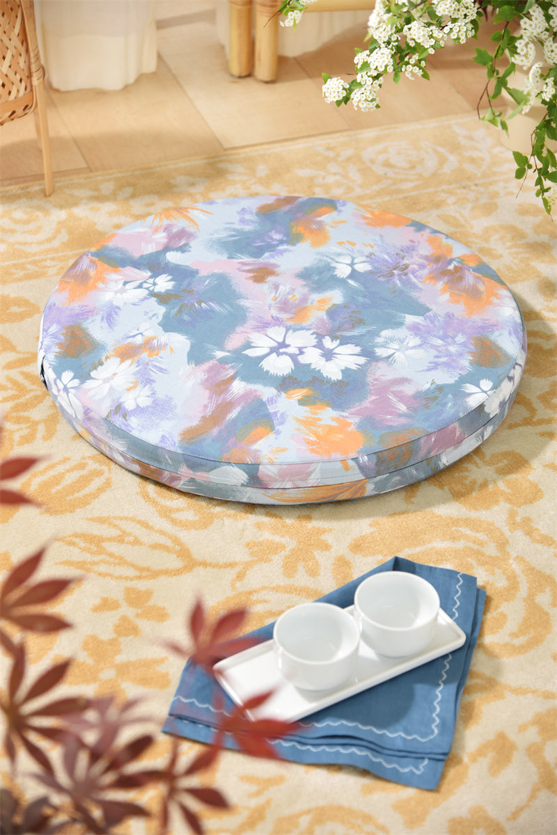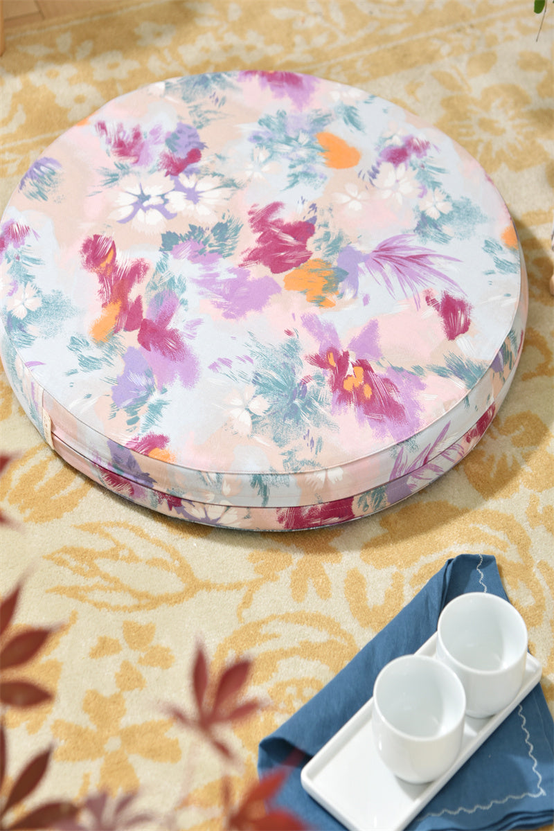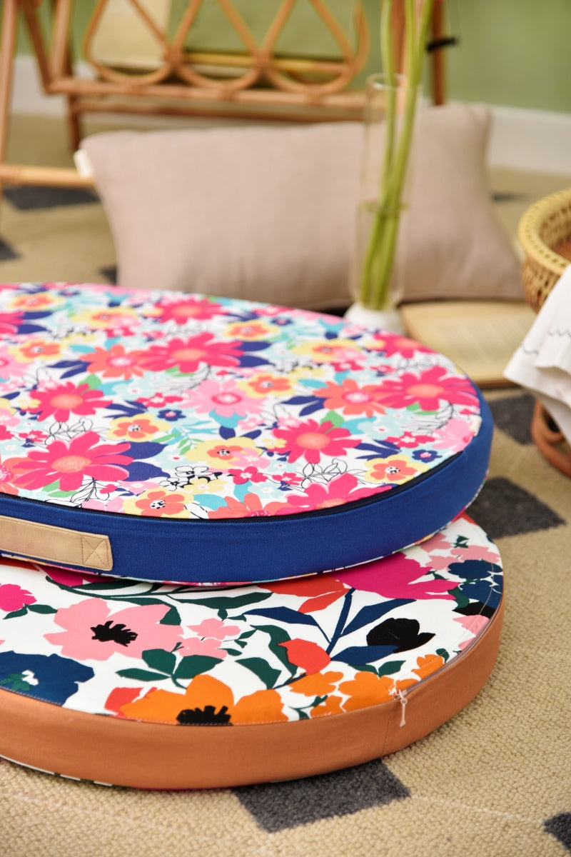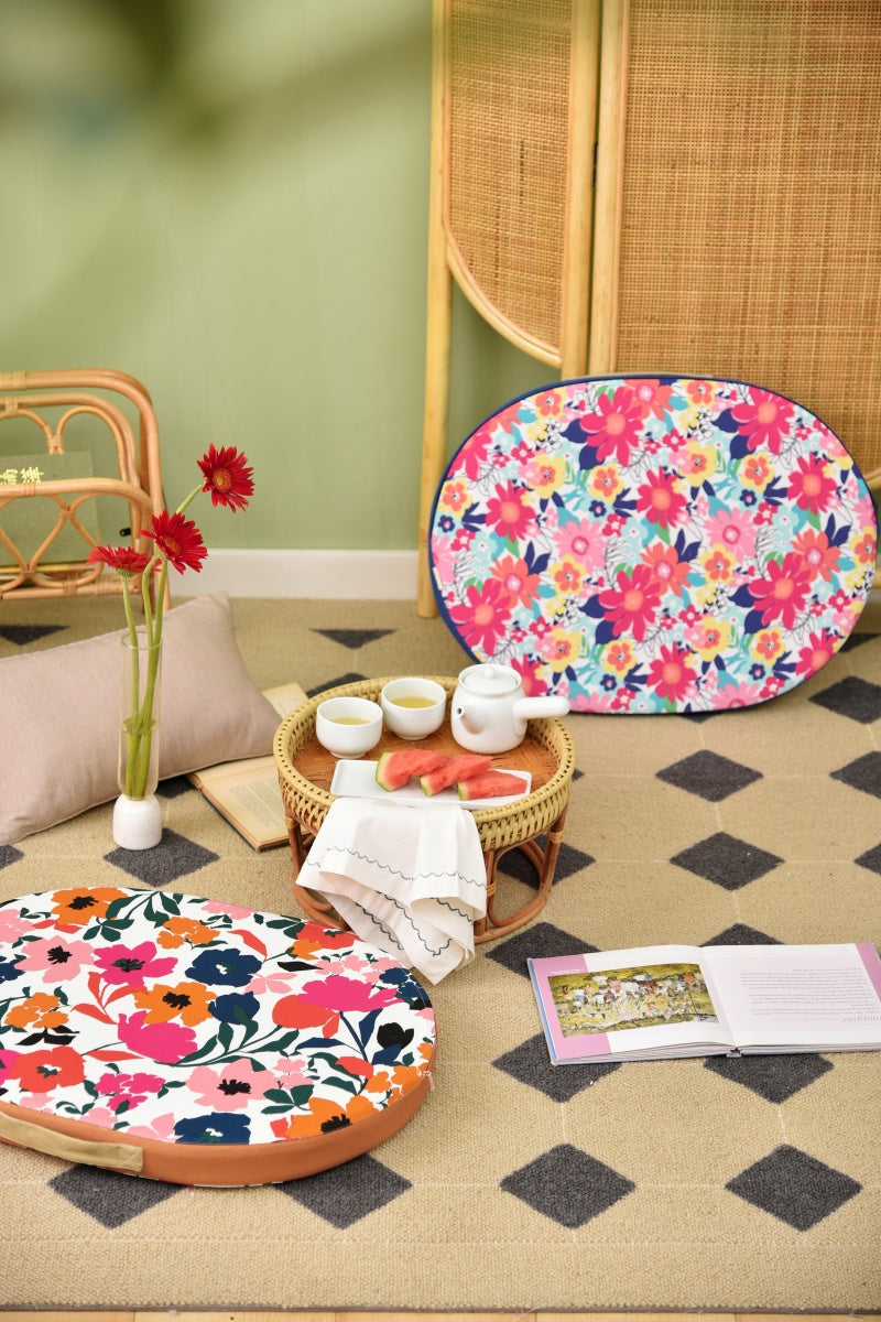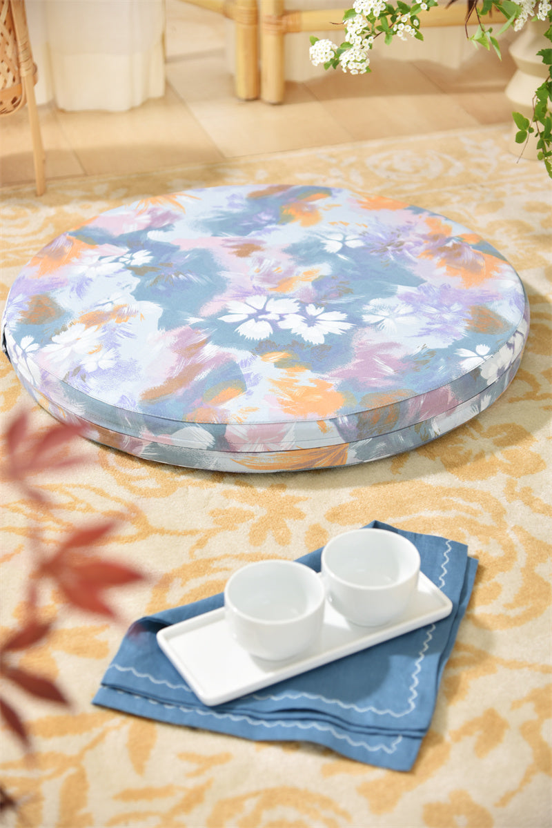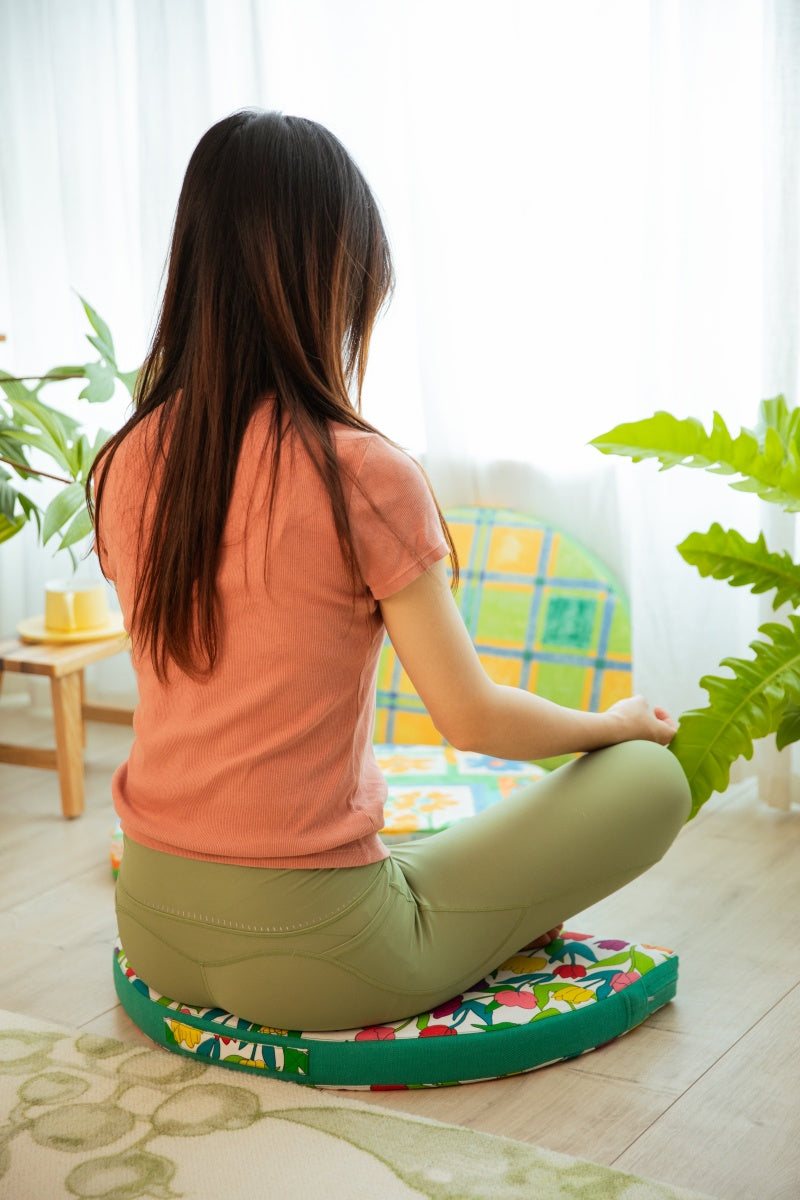 Floral Patterned Meditation Cushion – Handcrafted with Natural Palm Fiber