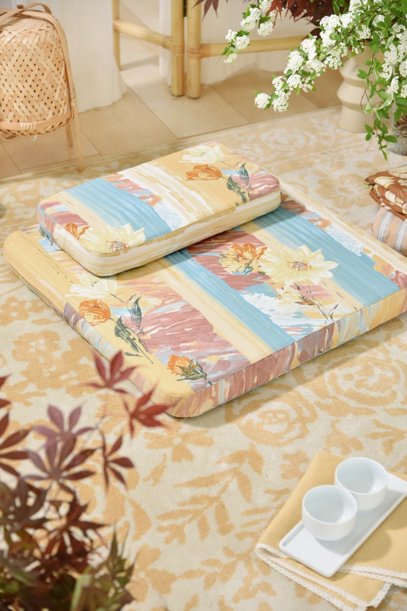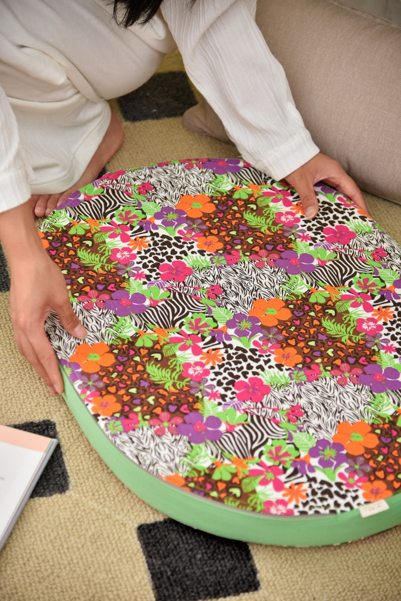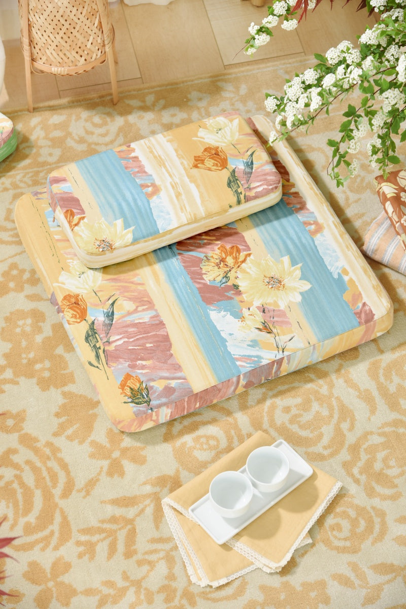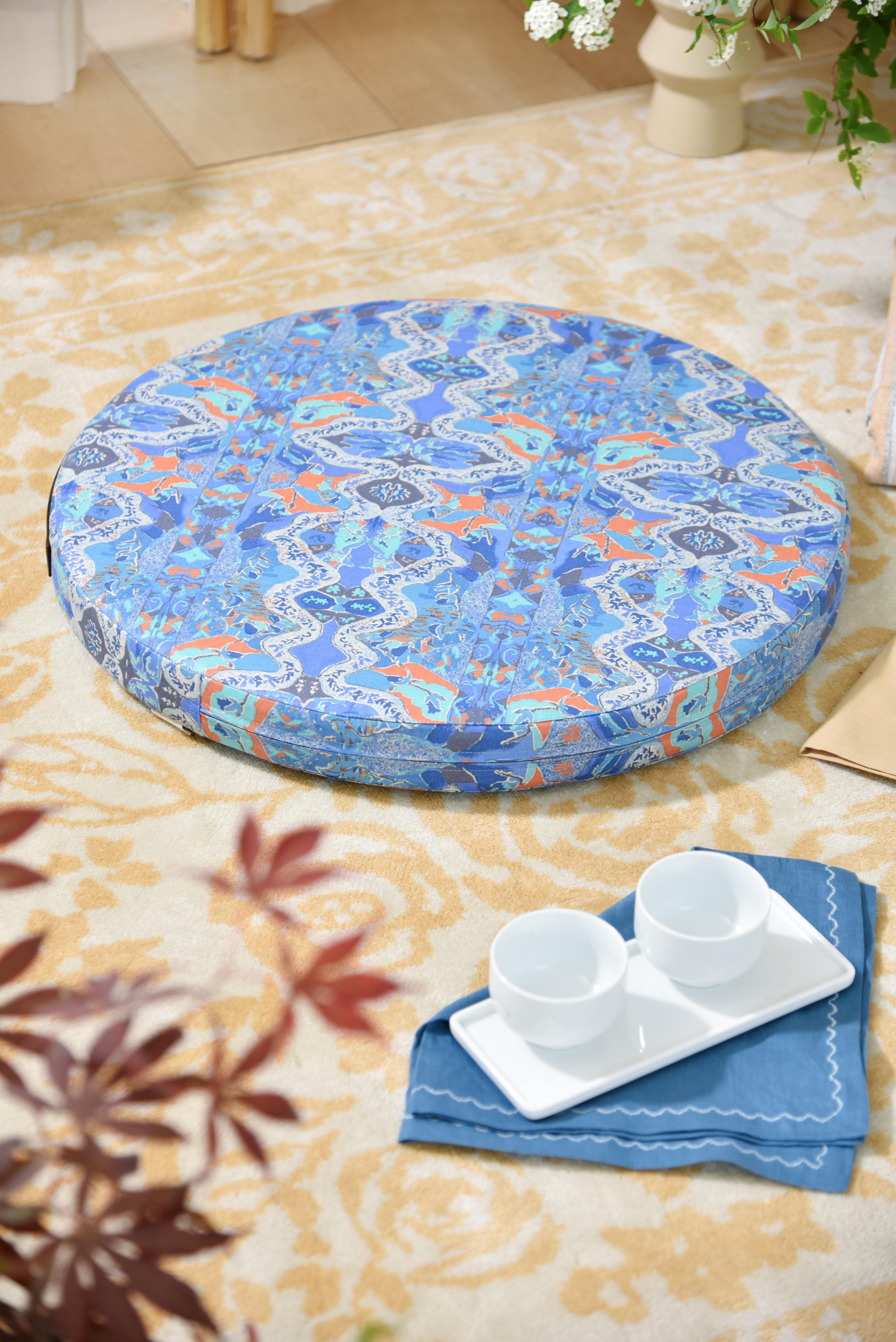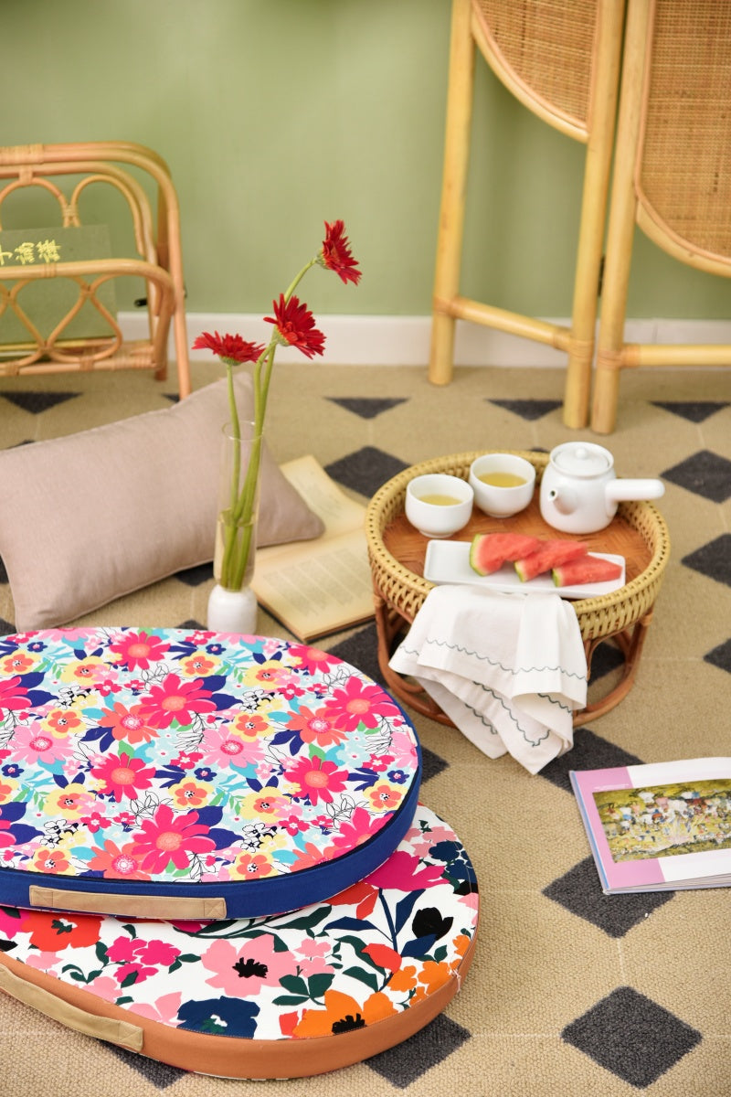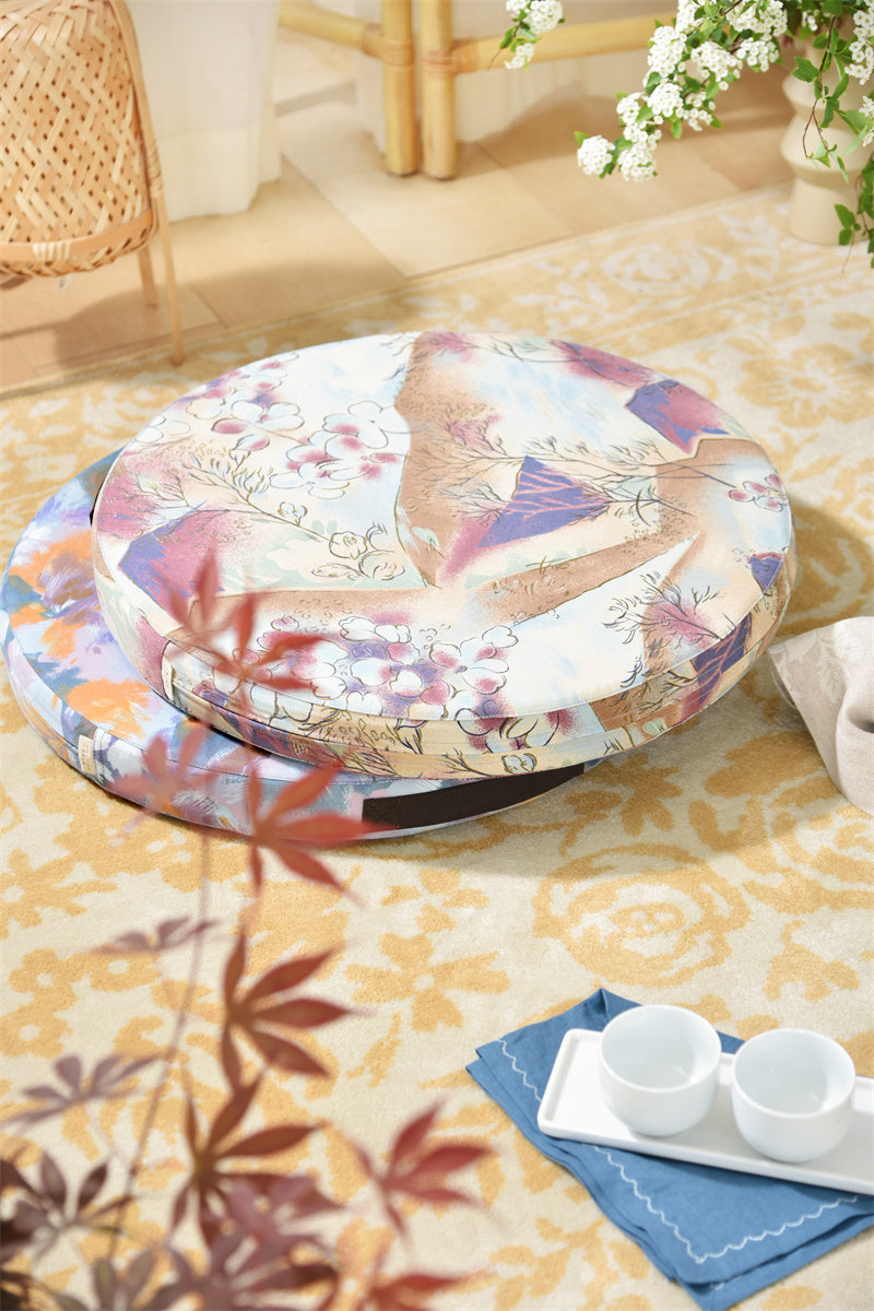 Floral Patterned Meditation Cushion – Handcrafted with Natural Palm Fiber