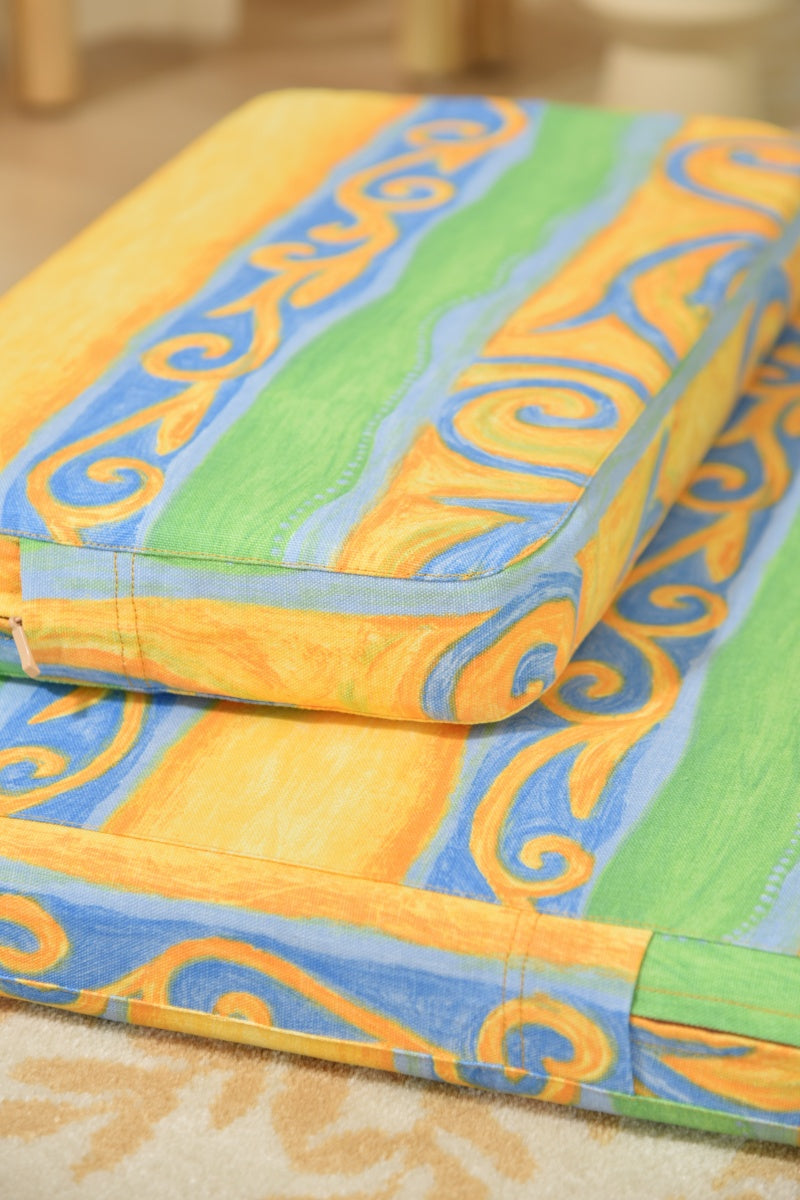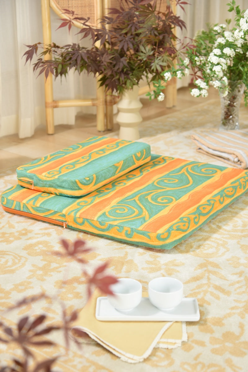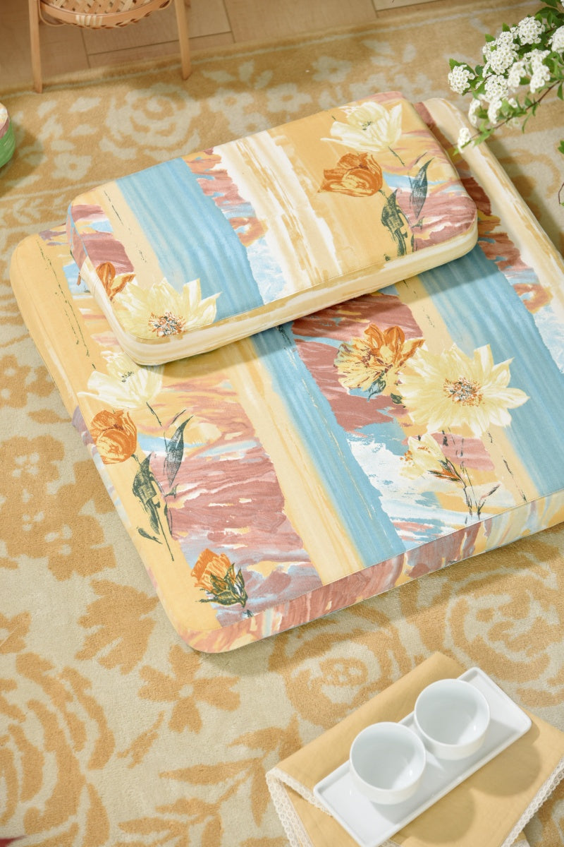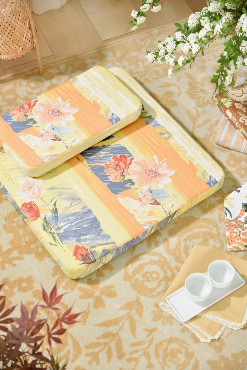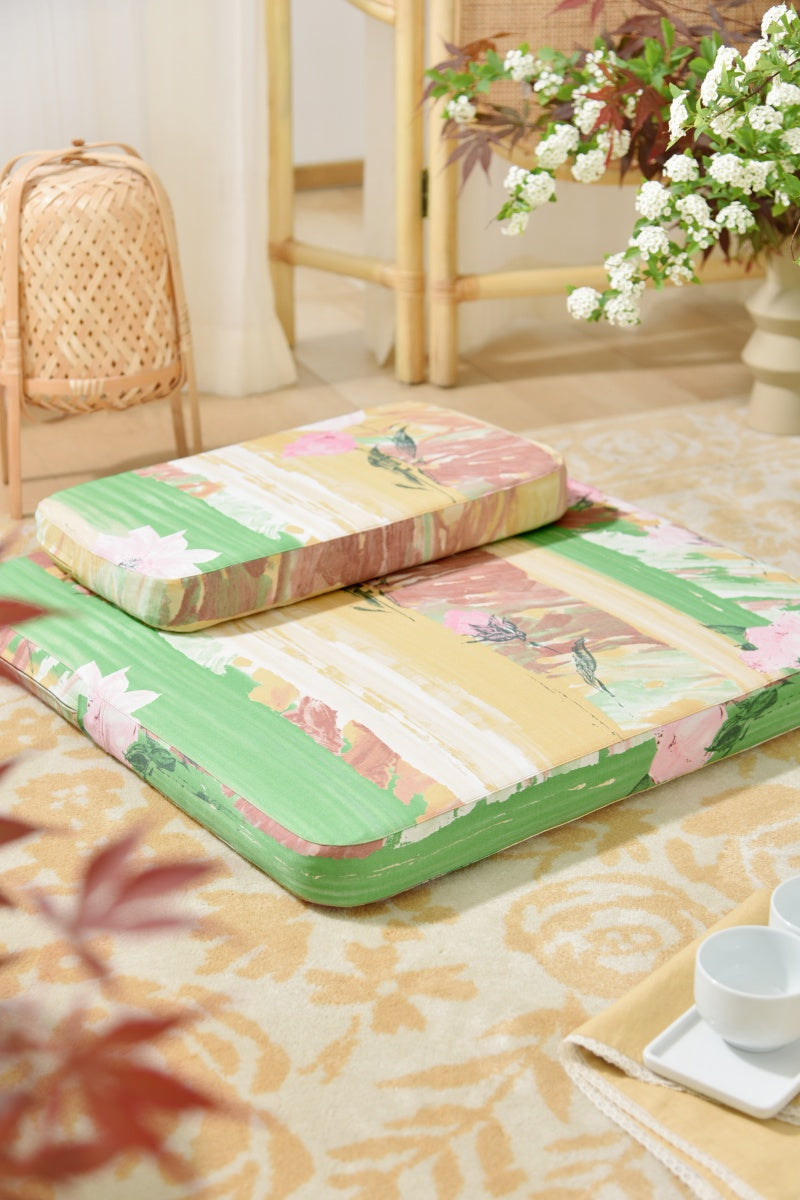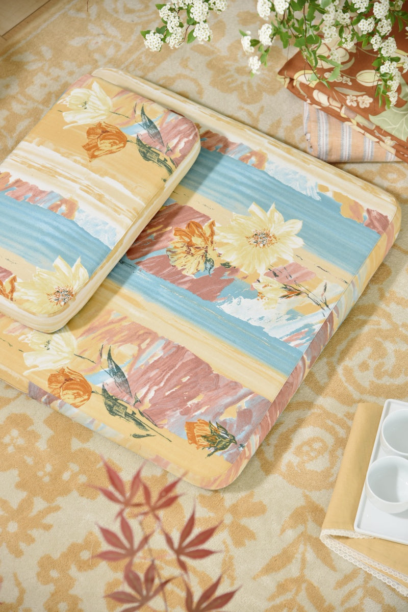 Floral Patterned Meditation Cushion – Handcrafted with Natural Palm Fiber