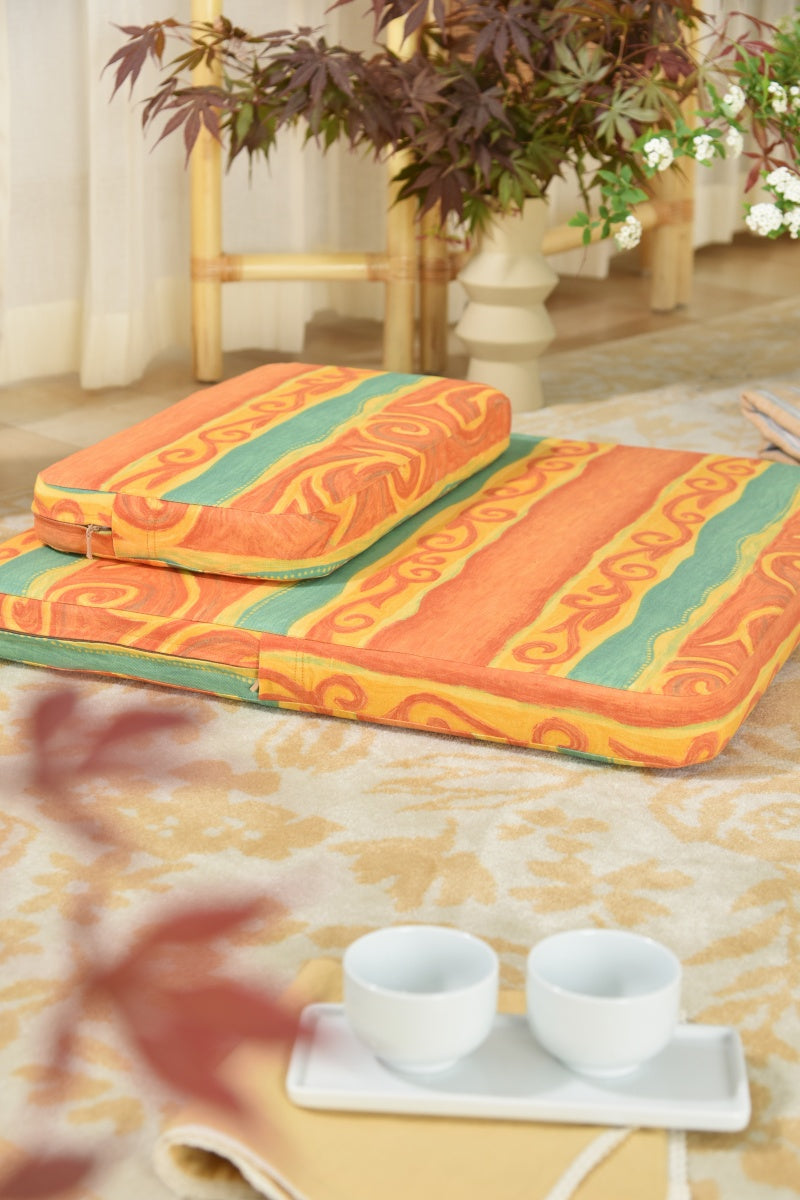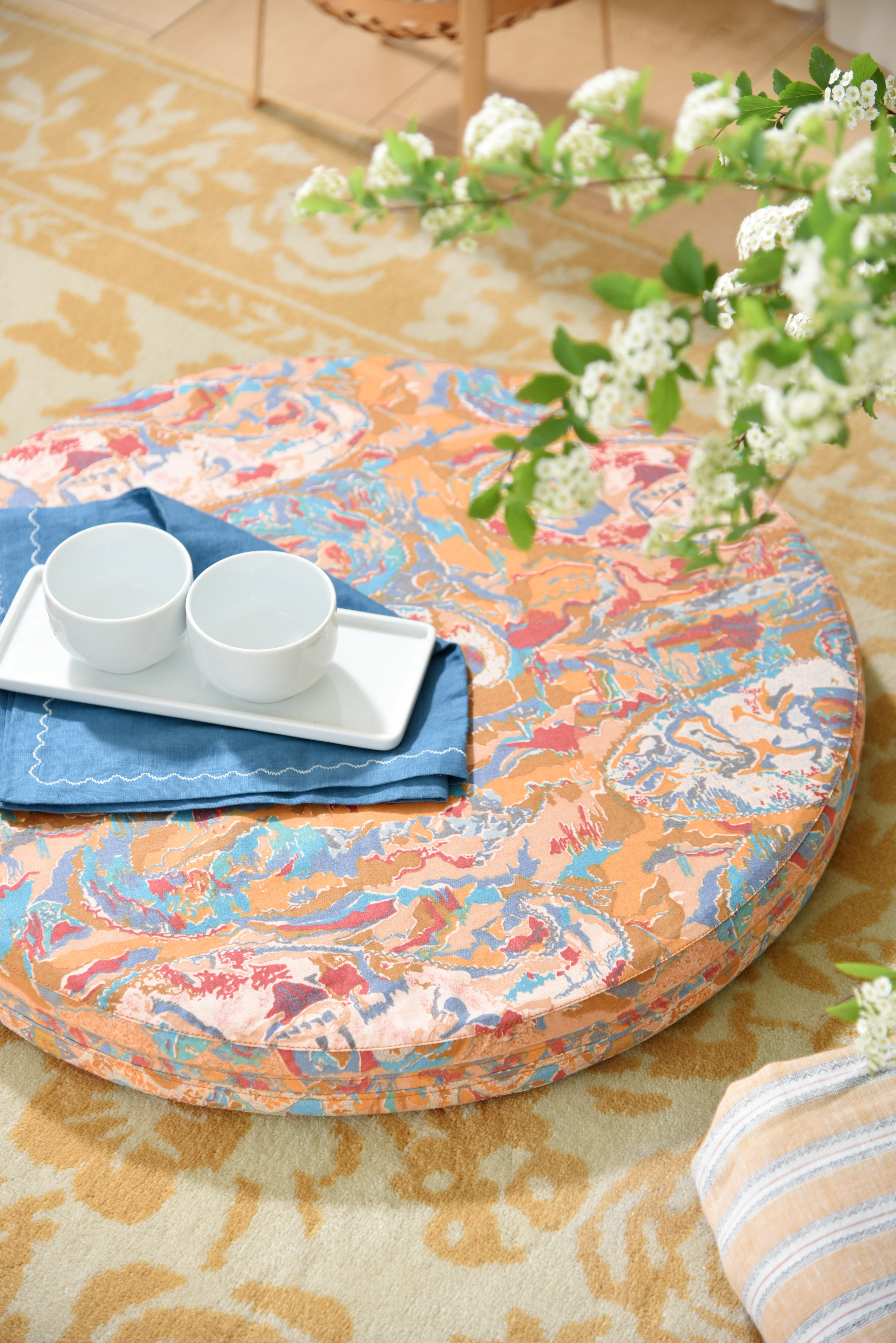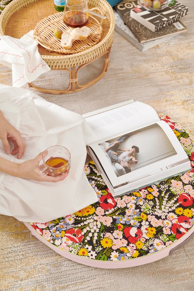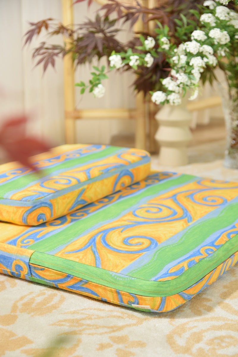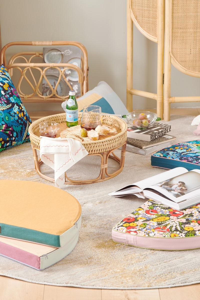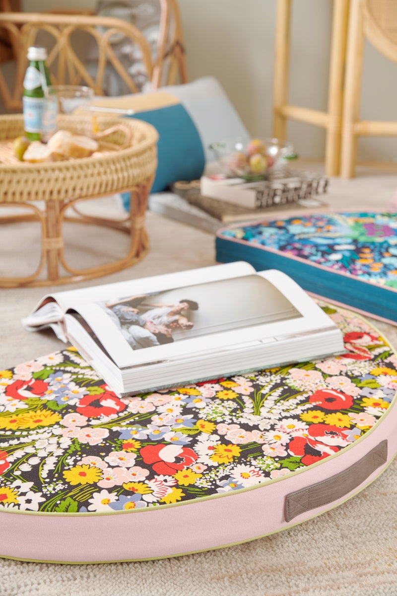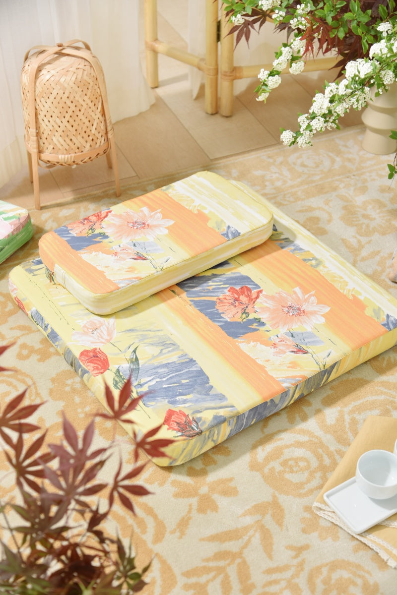 Floral Patterned Meditation Cushion – Handcrafted with Natural Palm Fiber