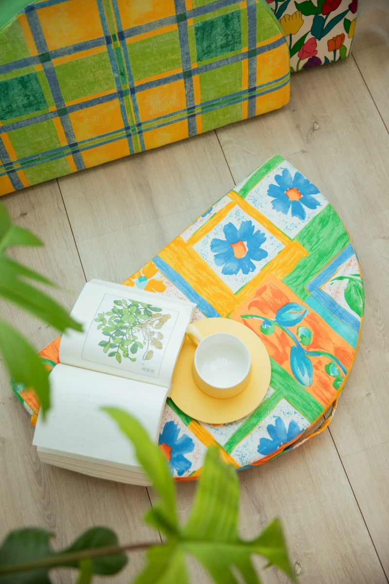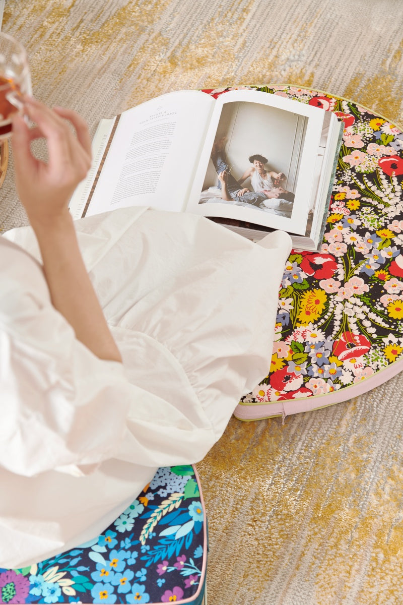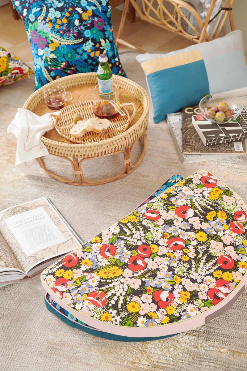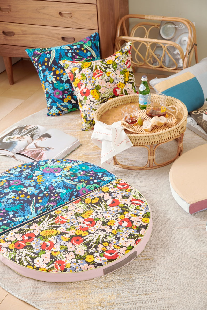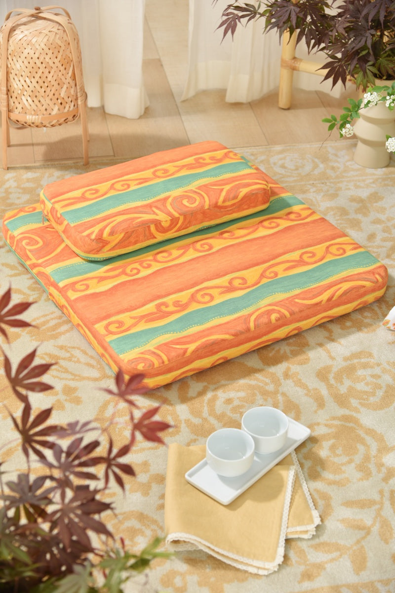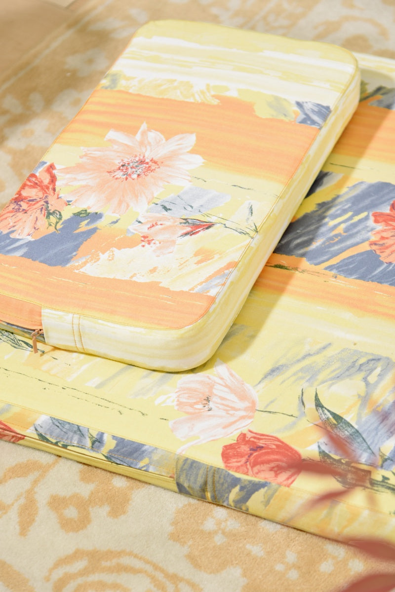 Floral Patterned Meditation Cushion – Handcrafted with Natural Palm Fiber