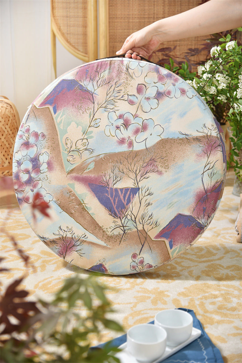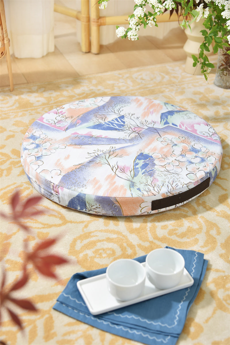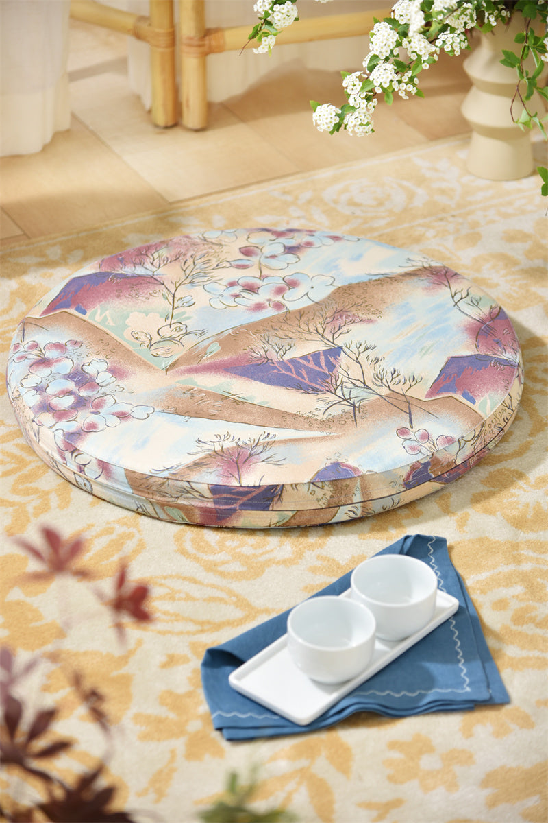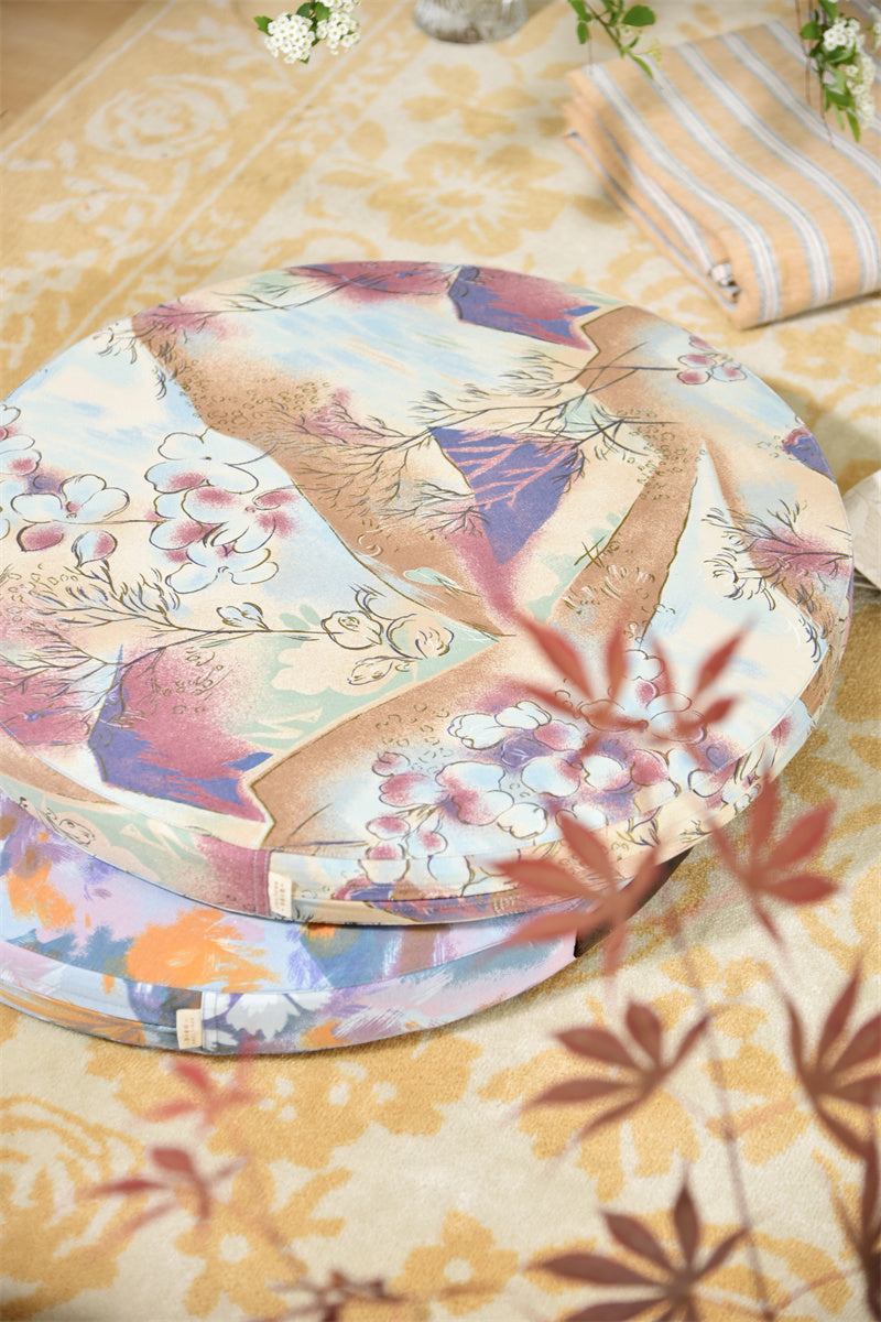 Mountains cape Artistic Round Meditation Cushion – Handcrafted with Natural Palm Fiber