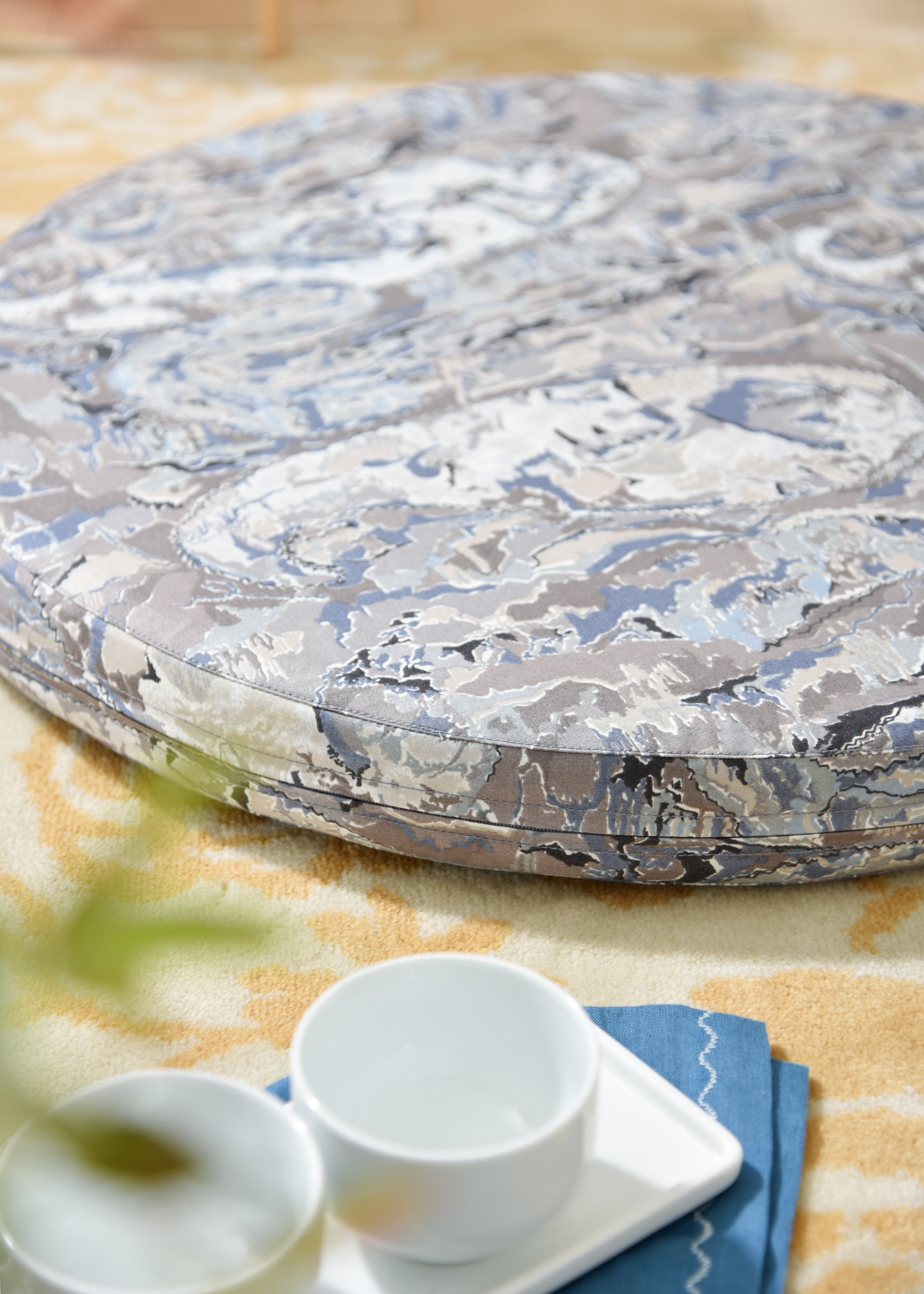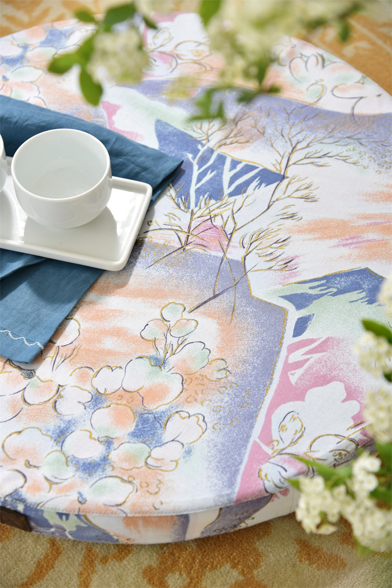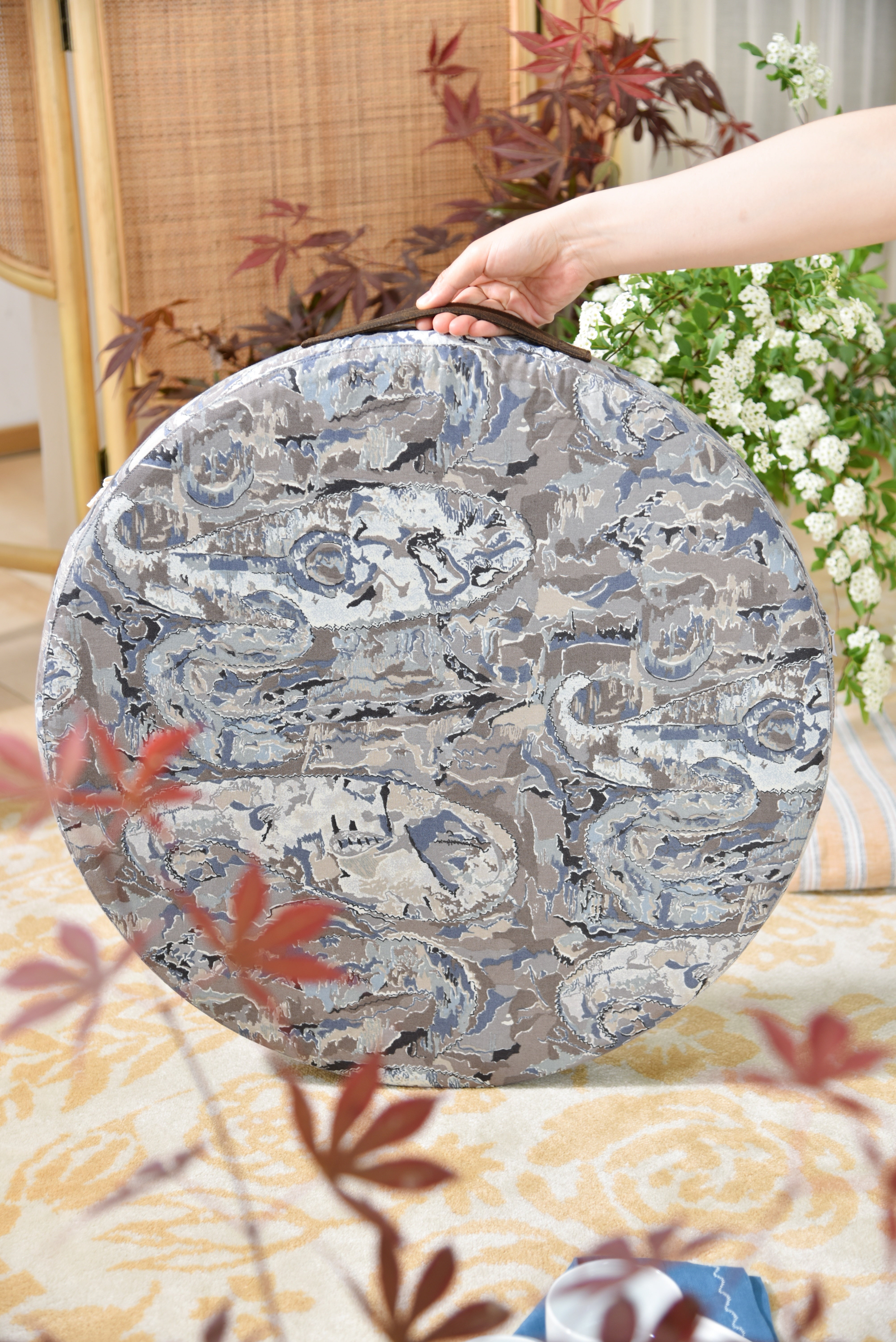 Mountains cape Artistic Round Meditation Cushion – Handcrafted with Natural Palm Fiber