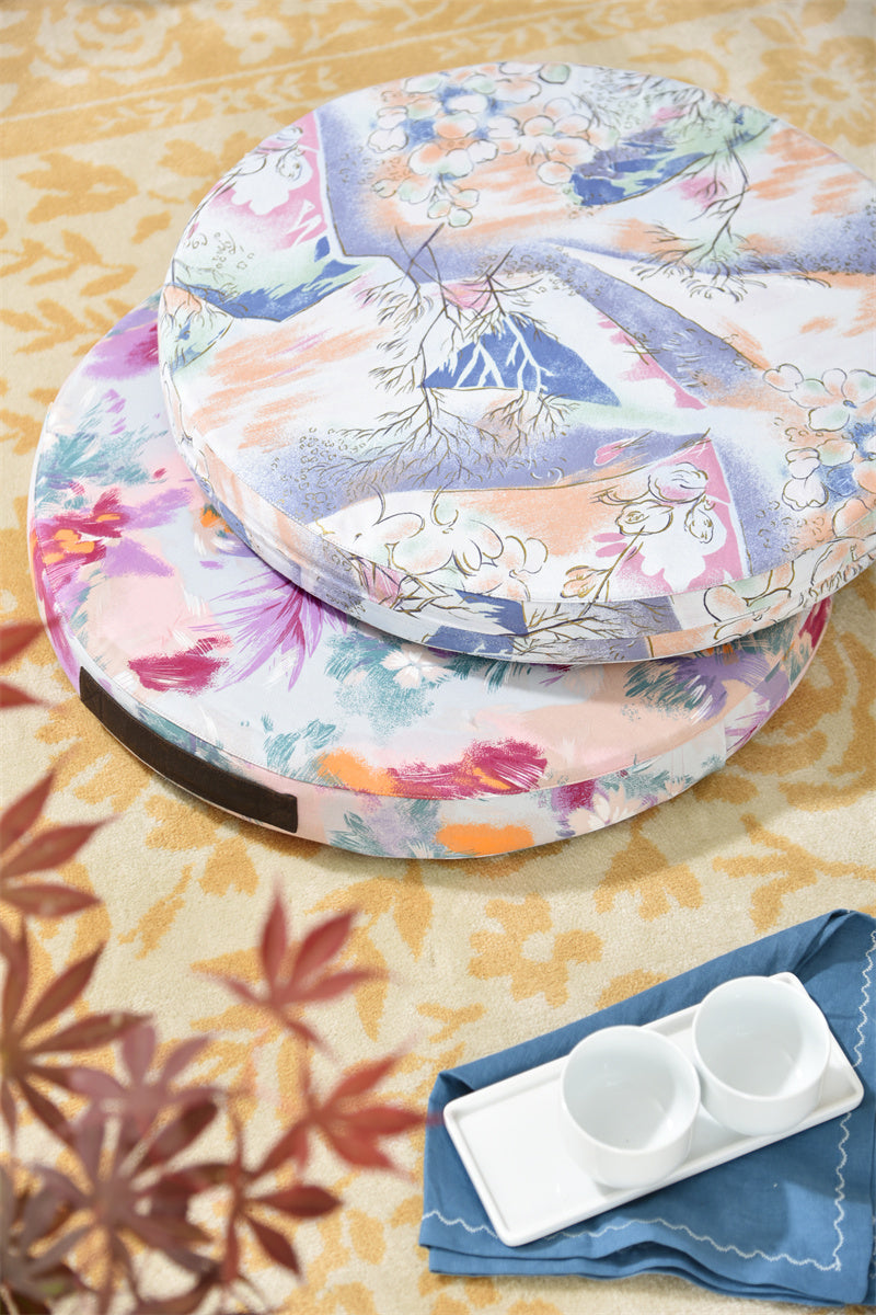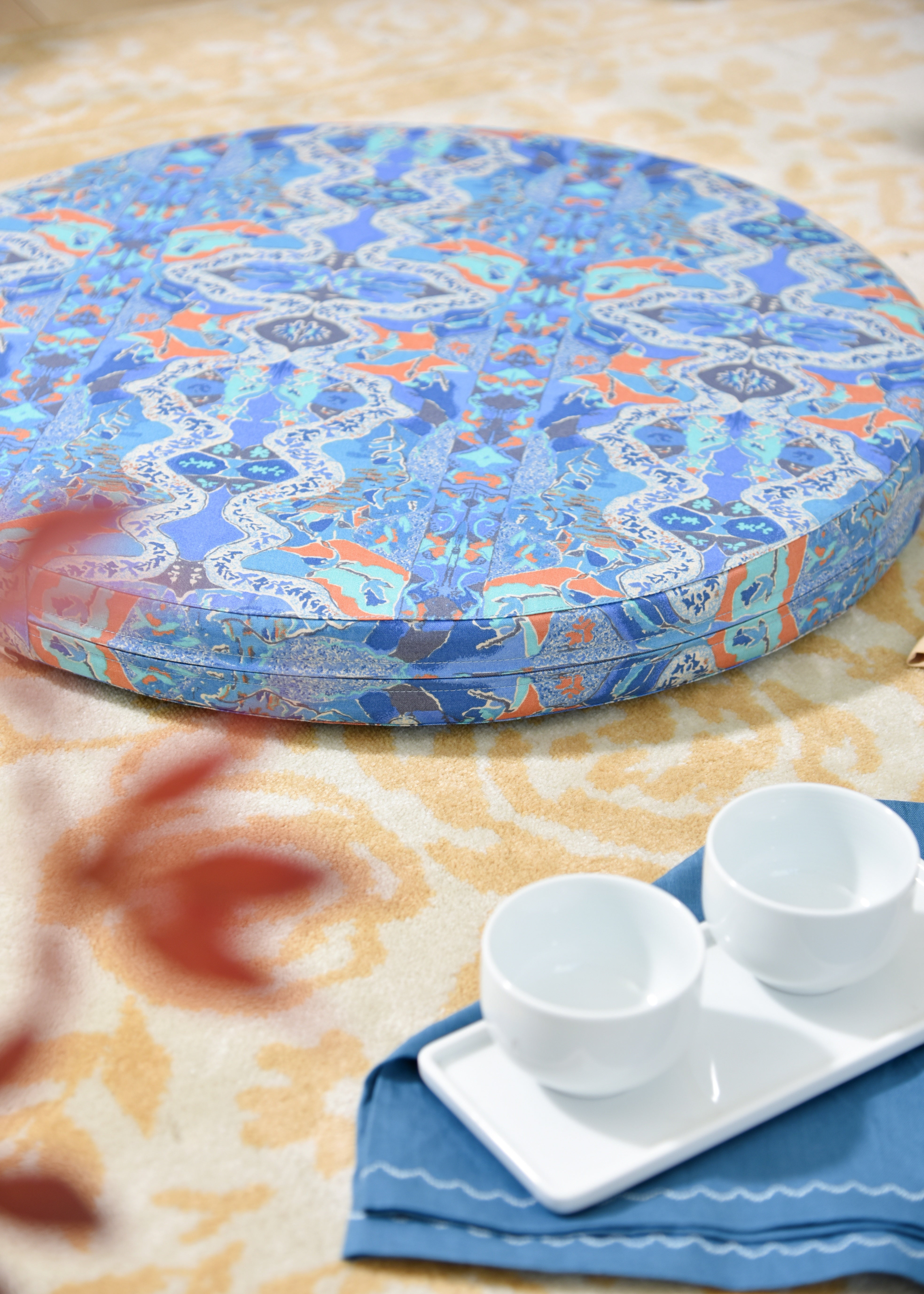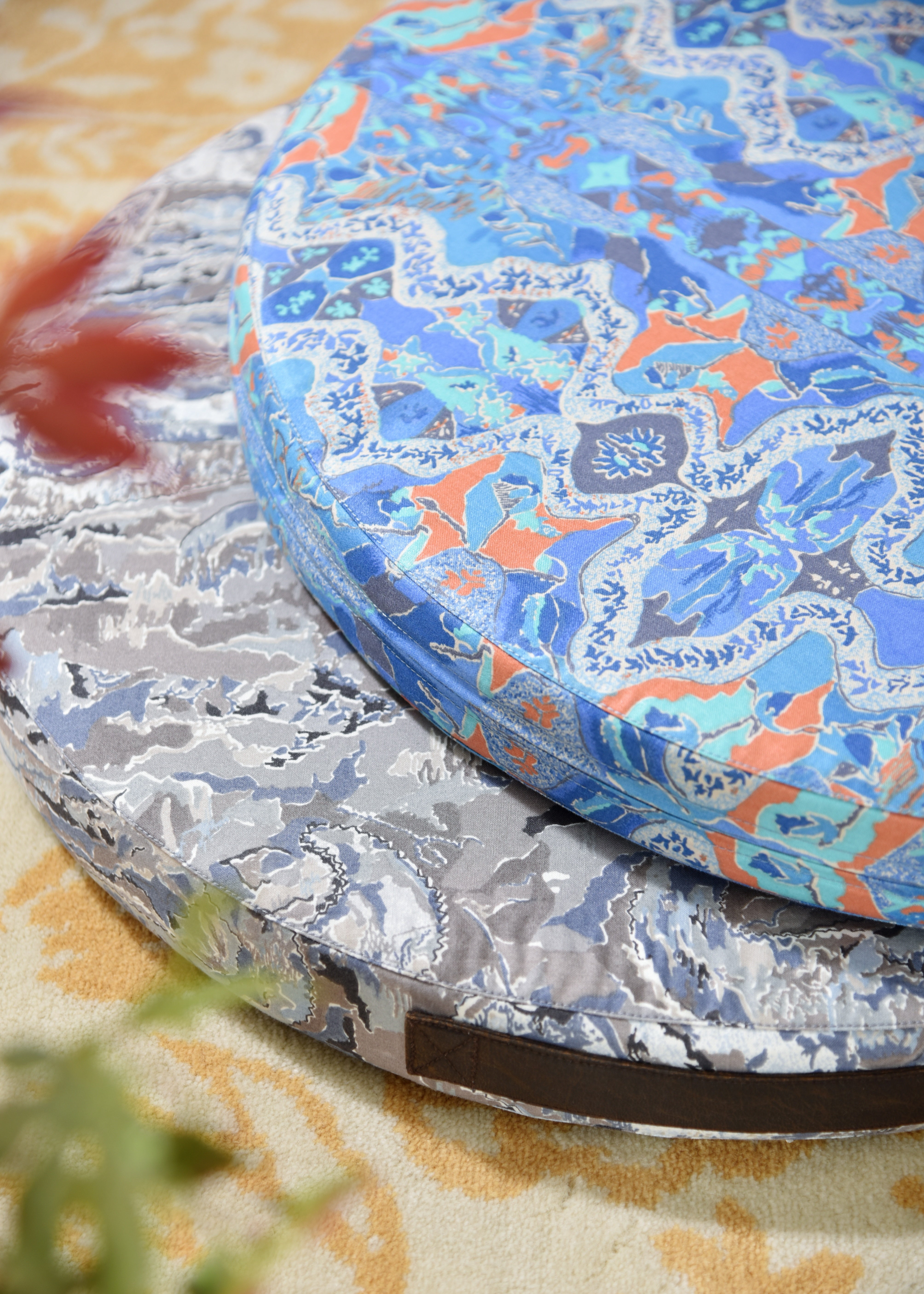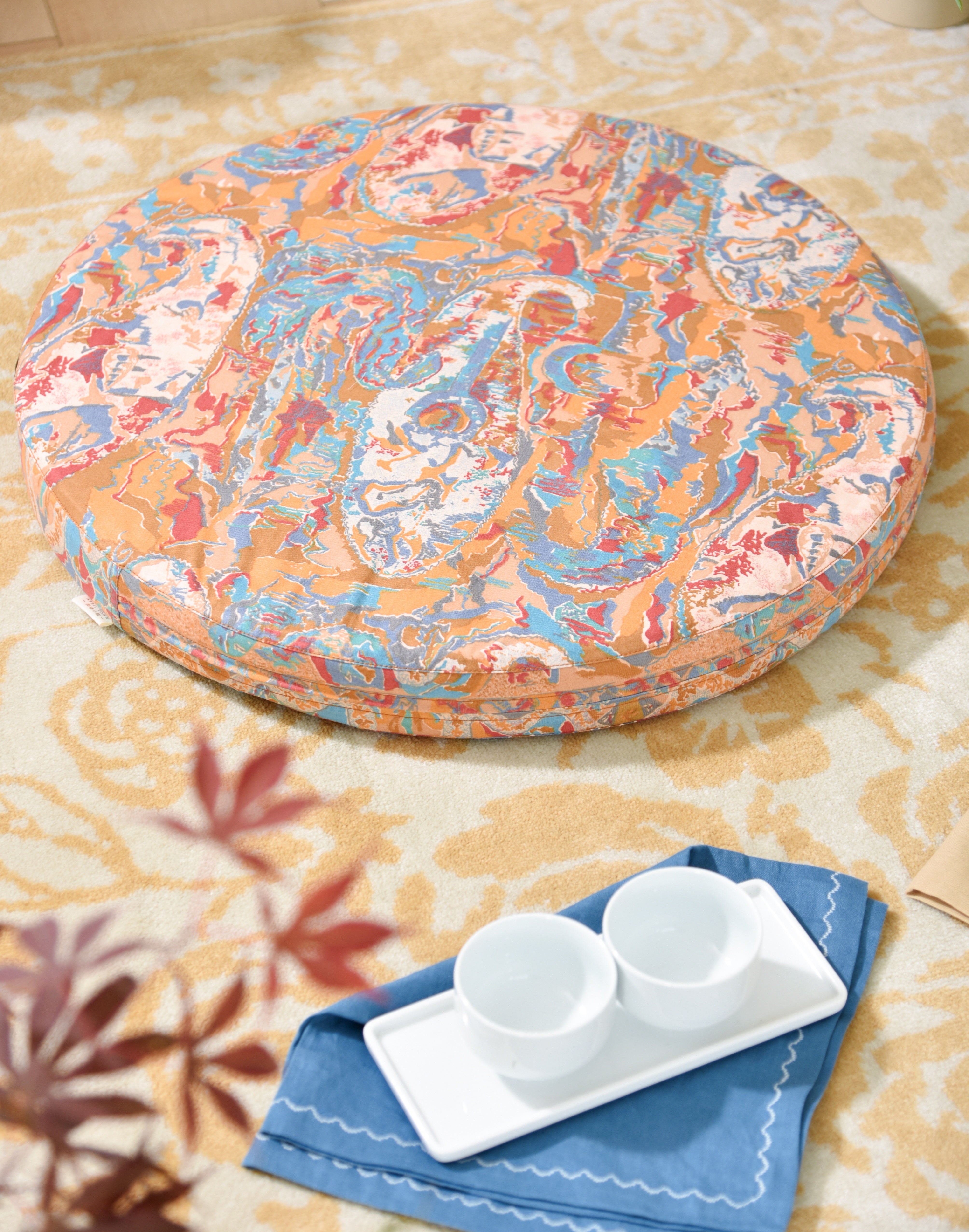 Kaleidoscope Artistic Round Meditation Cushion – Handcrafted with Natural Palm Fiber