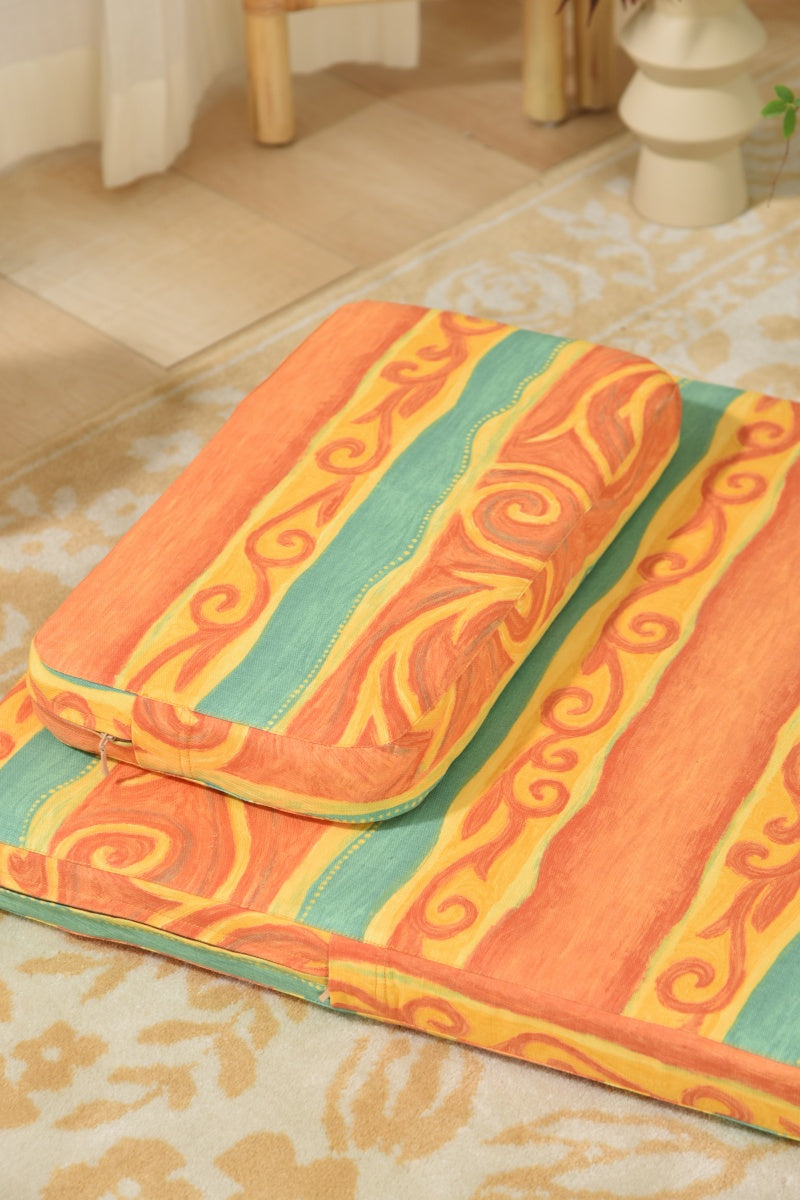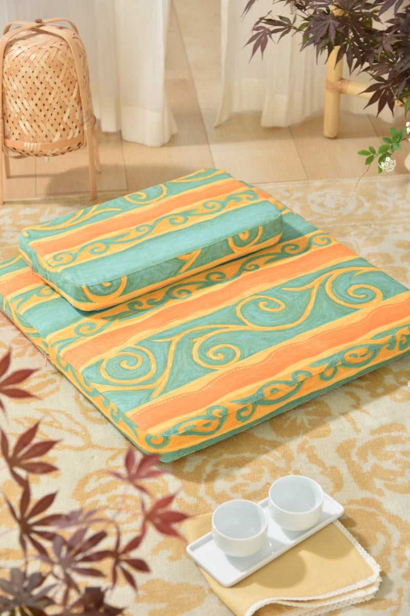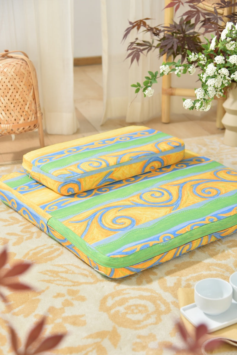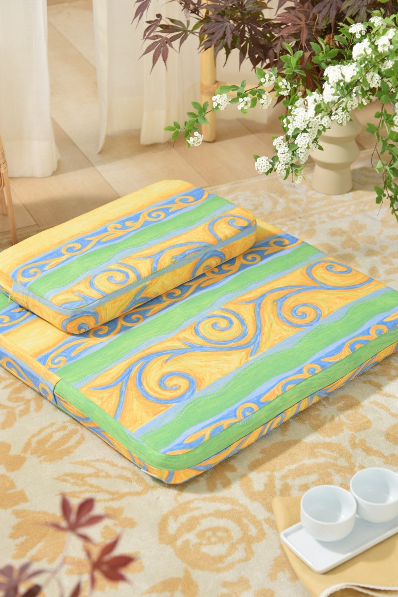 Kaleidoscope Artistic Round Meditation Cushion – Handcrafted with Natural Palm Fiber