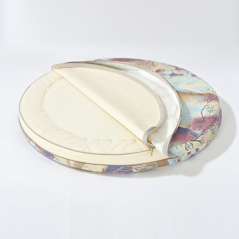 Our high-quality meditation cushion is designed for both comfort and style. This cushion breaks away from traditional, plain designs by featuring unique patterns inspired by paintings—adding personality to your practice. The cushion features a high-thread-count cotton cover, known for its breath ability and skin-friendly properties, offering superior comfort compared to synthetic fabrics. At the core, the cushion is crafted from natural palm fiber, providing excellent elasticity and firm support. Palm fiber offers natural moisture resistance, breath ability, and temperature regulation. The cover is made from high-quality 100% cotton, offering a breathable and skin-friendly surface, perfect for longer meditation sessions. What truly sets this product apart is its handcrafted construction. The palm fiber core is bordered with hand-stitched edges, a rare feature that adds durability and aesthetic value. This versatile, premium meditation cushion combines natural materials, elegant design, and handmade craftsmanship, making it an ideal choice for beginners and advanced practitioners seeking both comfort and aesthetic appeal.