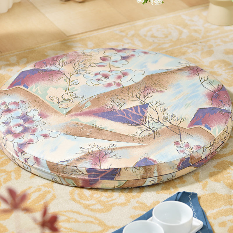 Mountains cape Artistic Round Meditation Cushion – Handcrafted with Natural Palm Fiber
