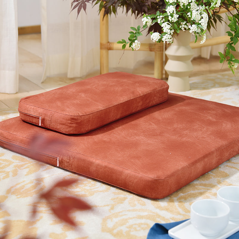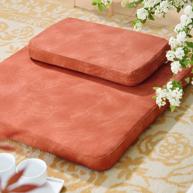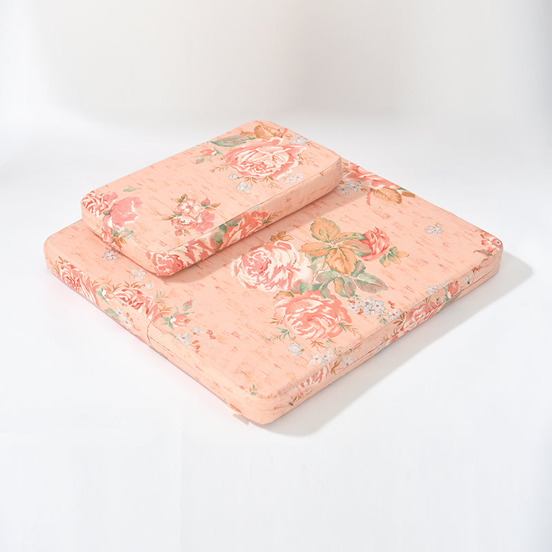 Our high-quality meditation cushion is designed for both comfort and style. This cushion breaks away from traditional, plain designs by featuring a beautiful rose pattern and a coral red textured pattern—adding personality to your practice. The cushion features a high-thread-count cotton cover, known for its breathability and skin-friendly properties, offering superior comfort compared to synthetic fabrics. At the core, the cushion is crafted from natural palm fiber, providing excellent elasticity and firm support. Palm fiber offers natural moisture resistance, breathability, and temperature regulation. The cover is made from high-quality 100% cotton, offering a breathable and skin-friendly surface, perfect for longer meditation sessions. What truly sets this product apart is its handcrafted construction. The palm fiber core is bordered with hand-stitched edges, a rare feature that adds durability and aesthetic value. This versatile, premium meditation cushion combines natural materials, elegant design, and handmade craftsmanship, making it an ideal choice for beginners and advanced practitioners seeking both comfort and aesthetic appeal.