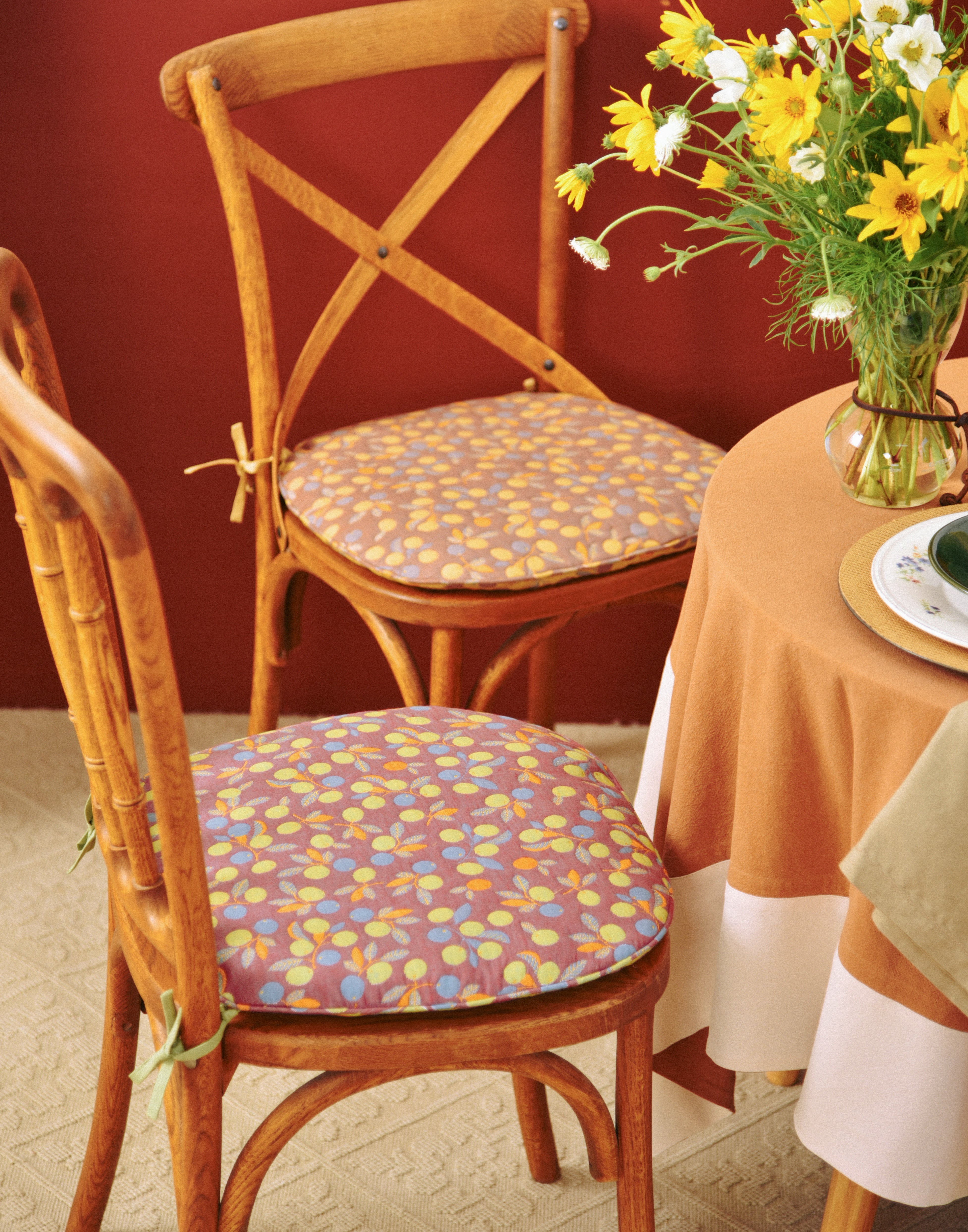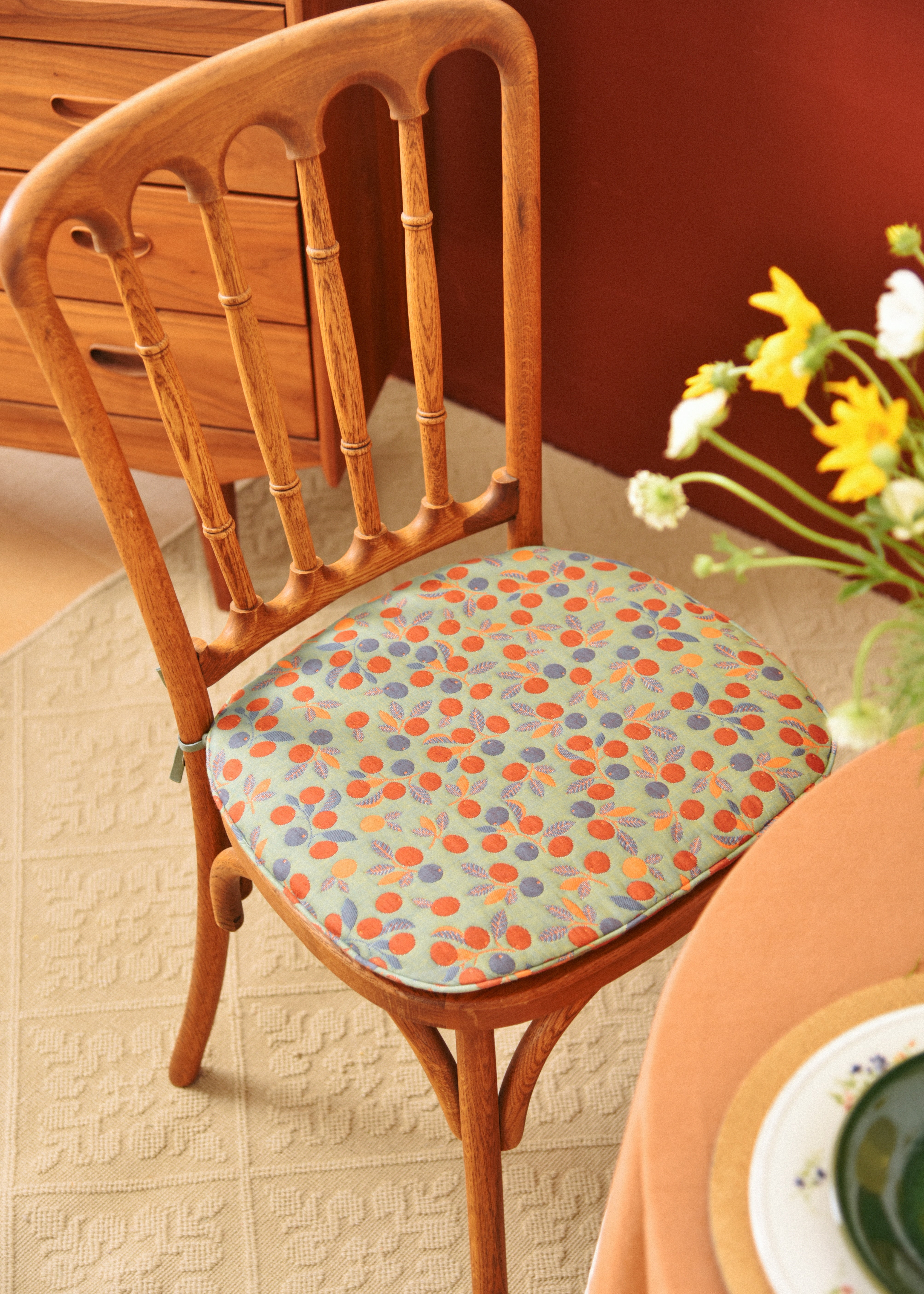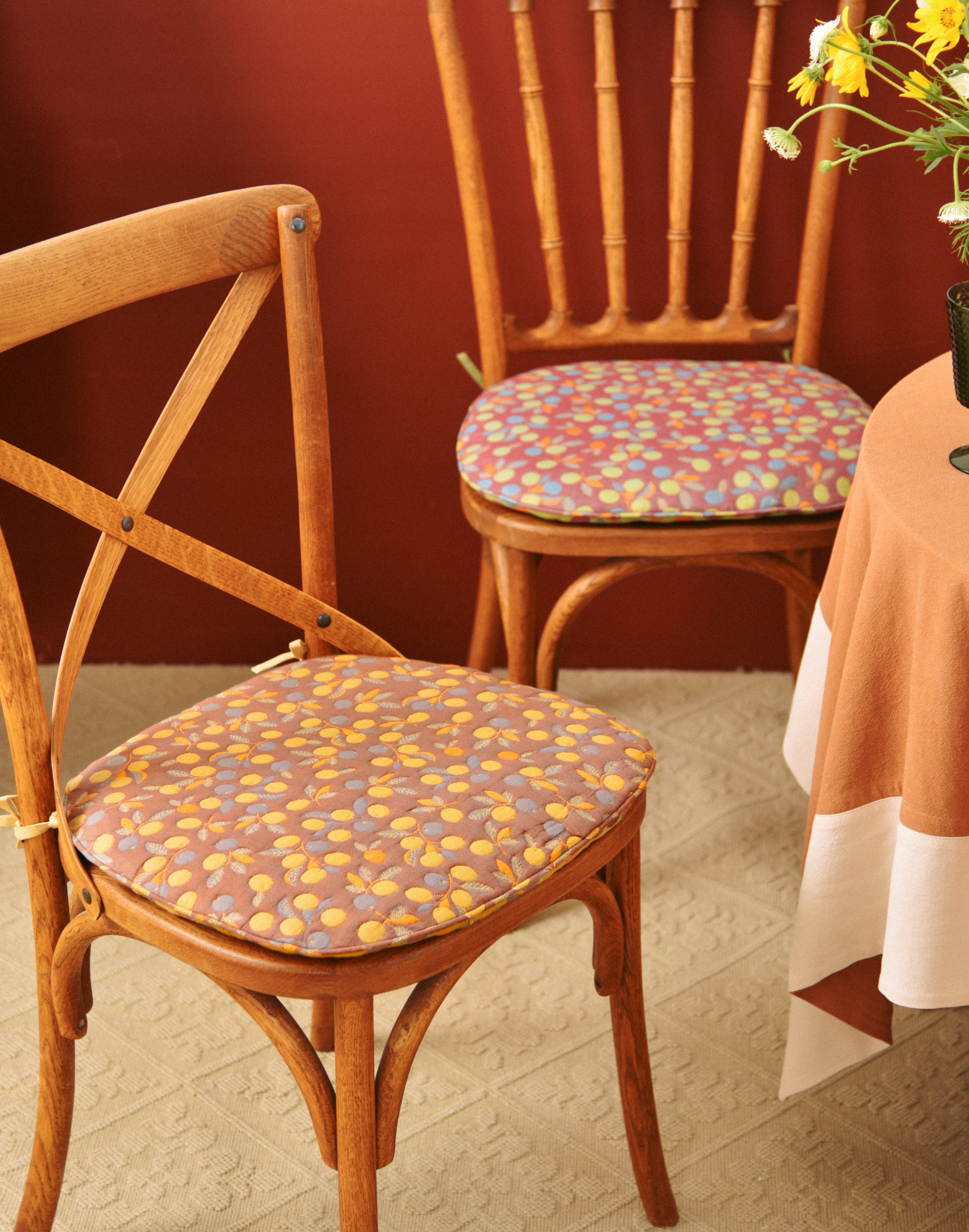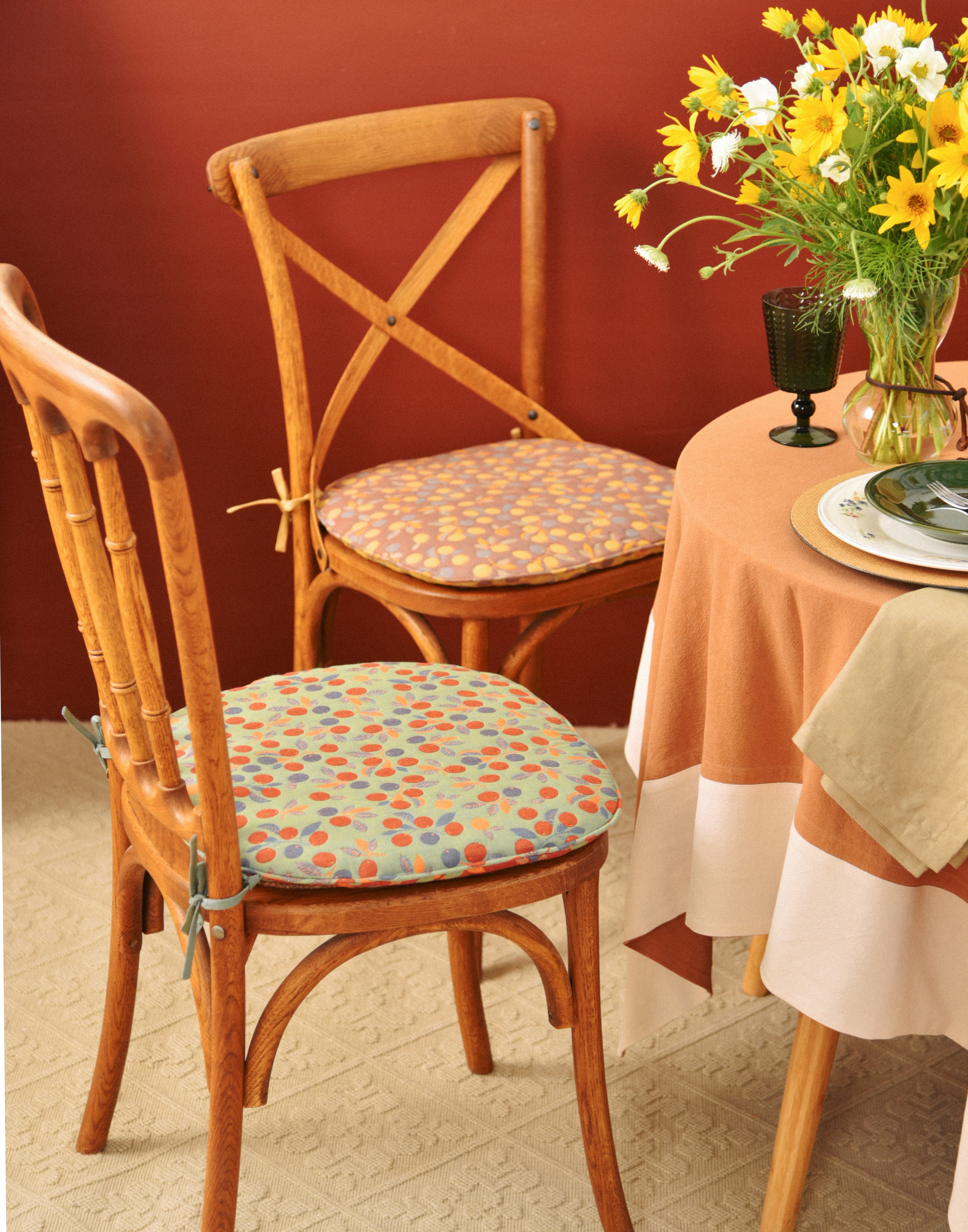 Chinese Flowering Crabapple Cotton Chair Cushion – Cozy Fall-Inspired Seating Pad